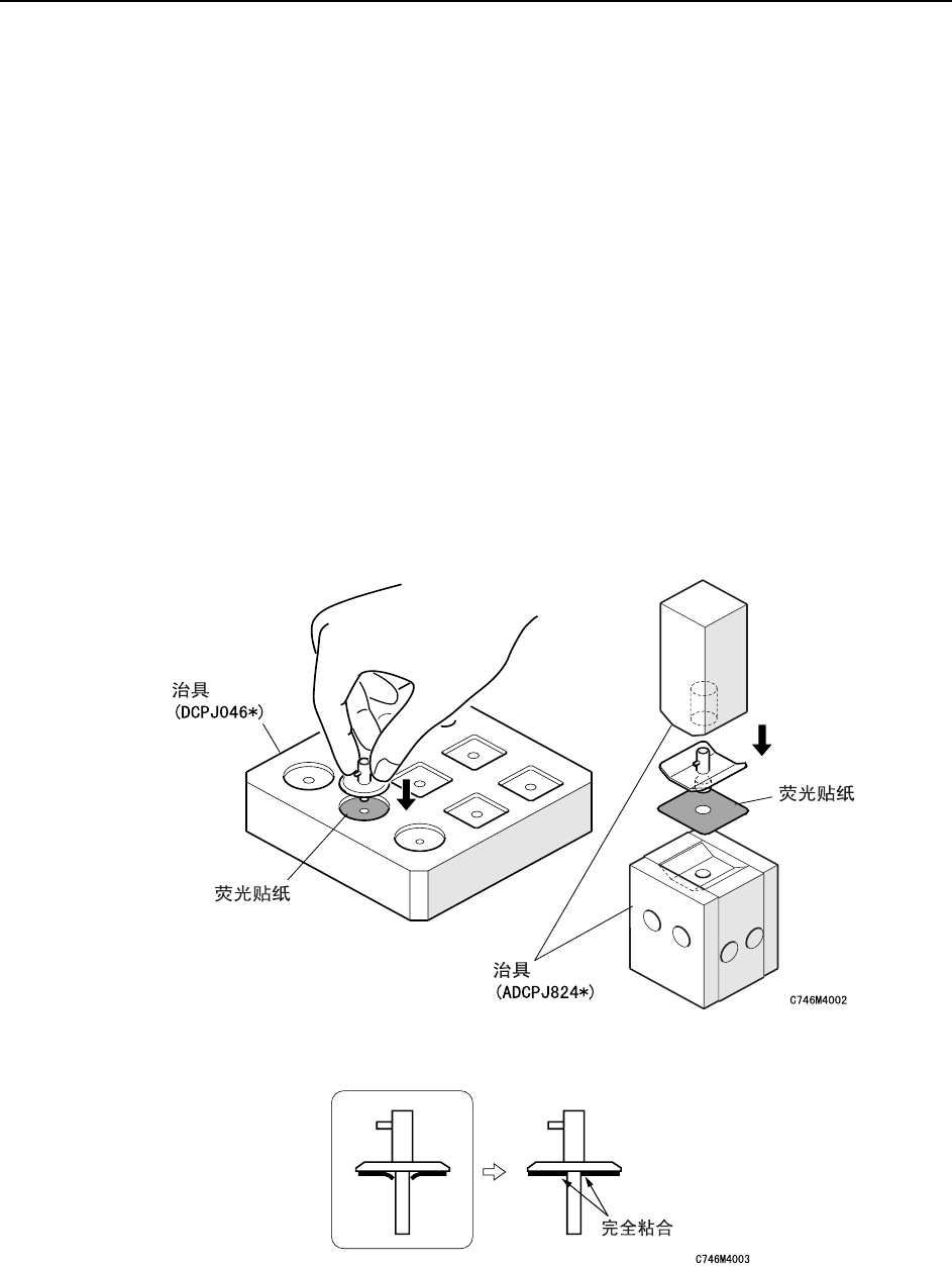 6 将吸嘴中心和荧光贴纸中心对齐,在治具上按下。这时请确认吸嘴和荧光贴纸之间