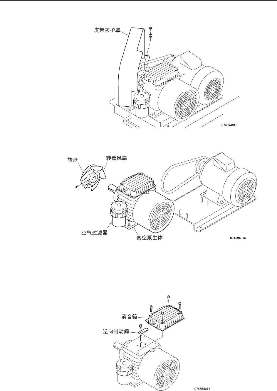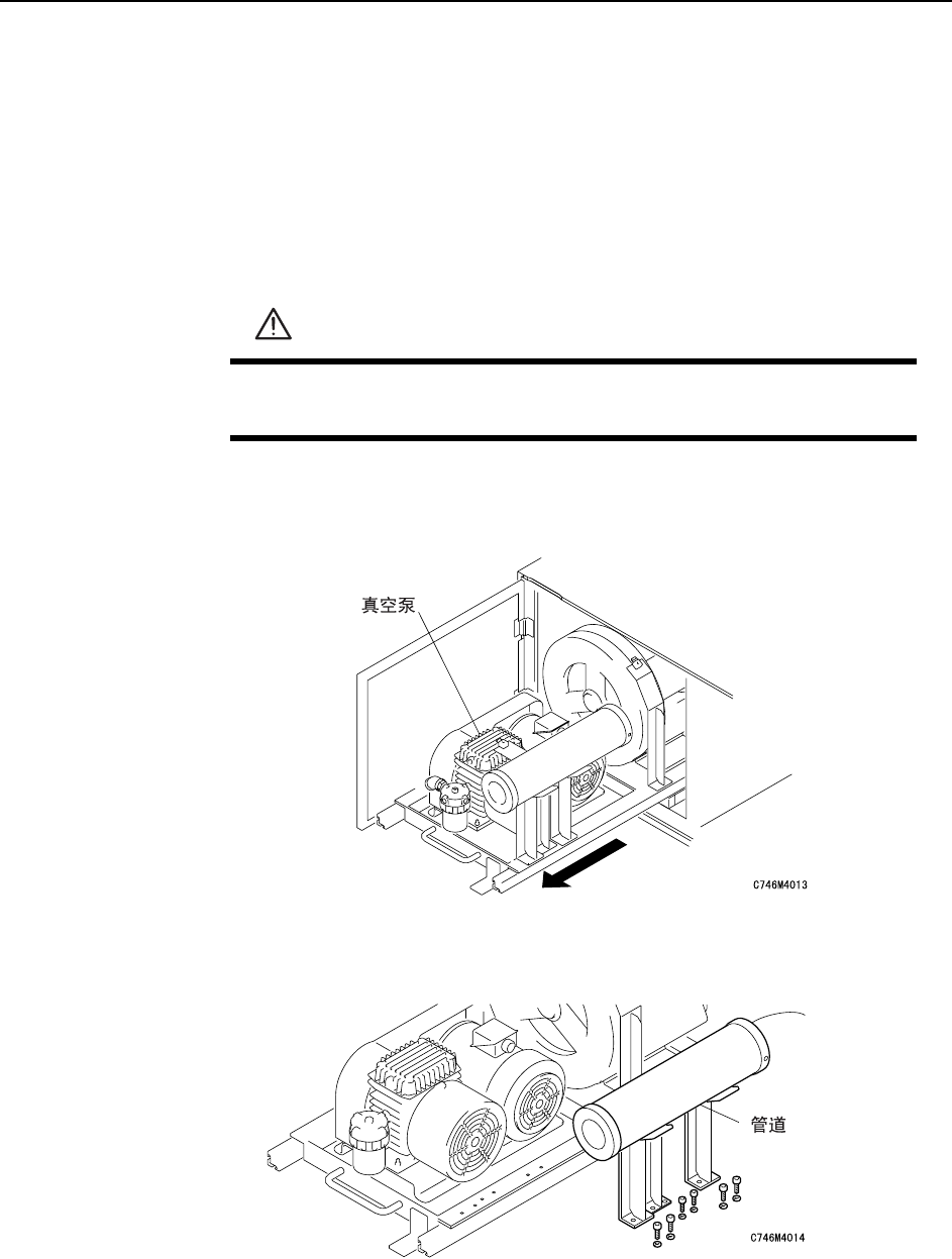1 取出真空泵,取出的方法顺序请参照 (本章 6.5 真空泵用皮带的交换)。