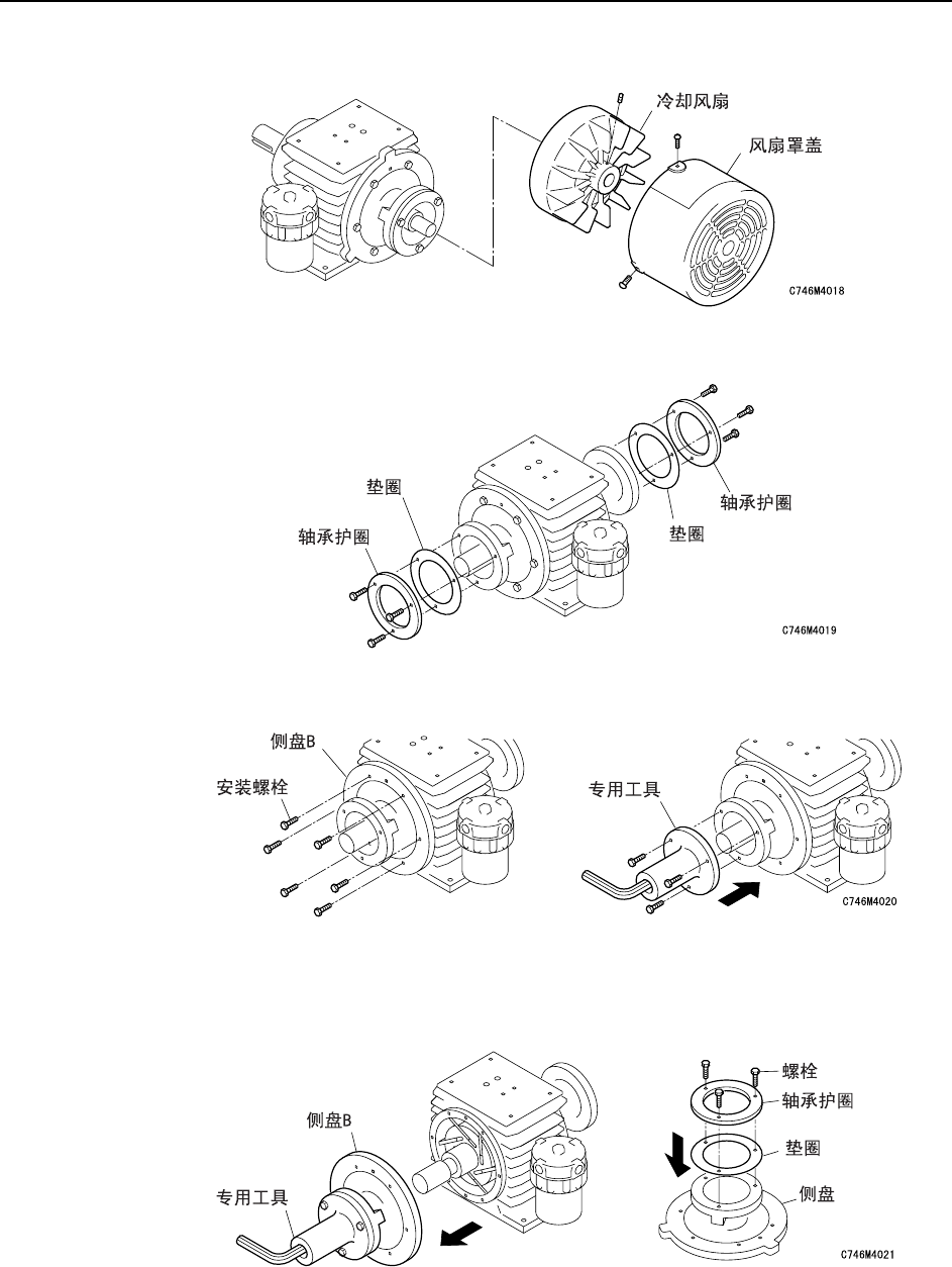 再从侧盘 B 处拆下专用工具,将在第 7. 项中拆下的轴承护圈和垫圈与侧盘 B 进行组