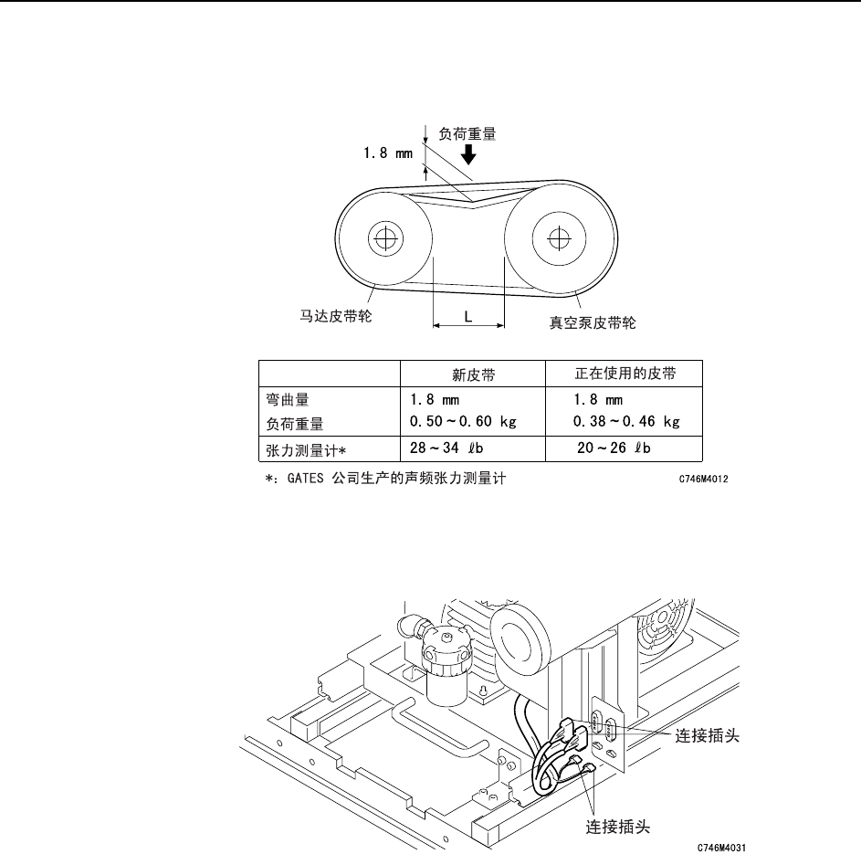 6 确认交换后的皮带张力,如张力值不在规定的范围之内时,请把马达以 0.1mm 程度