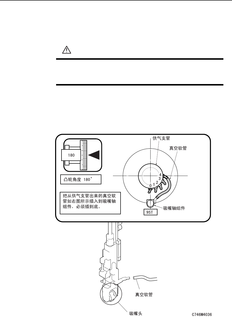 2 把要进行更换真空软管的贴装工作头移动到第 9 站后,将凸轮角度固定为 180 度,更