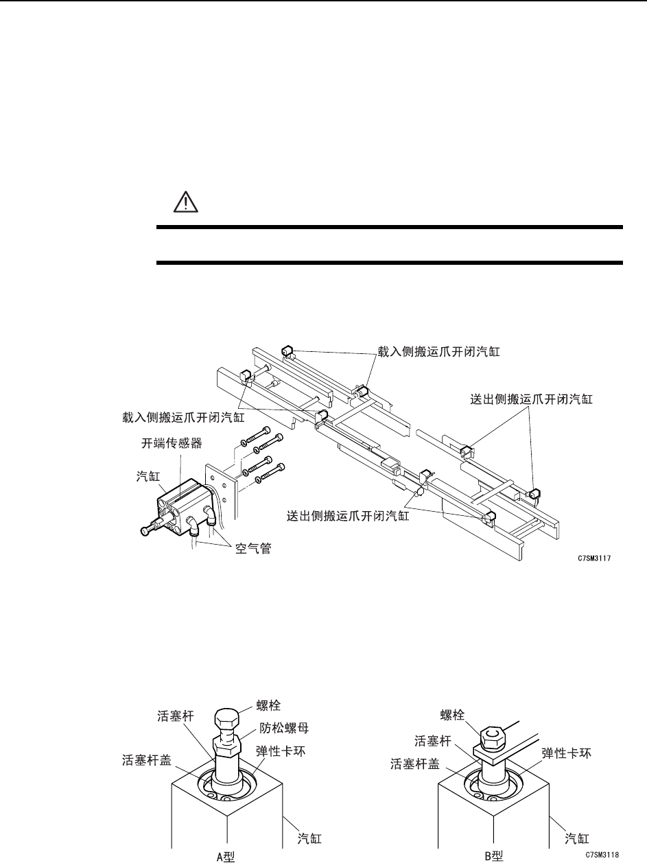 2 拆下螺栓 (4 根),从载入侧搬运爪及送出侧搬运爪的托架上拆下汽缸。