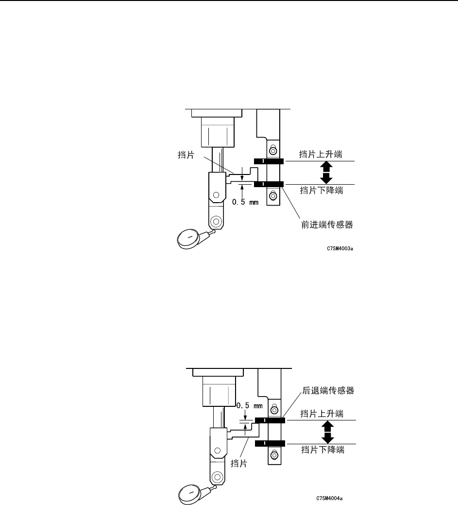 2 将千分表放在驱动滚轮部,调整传感器位置,使之从下降端开始上升 0.5mm 时变为