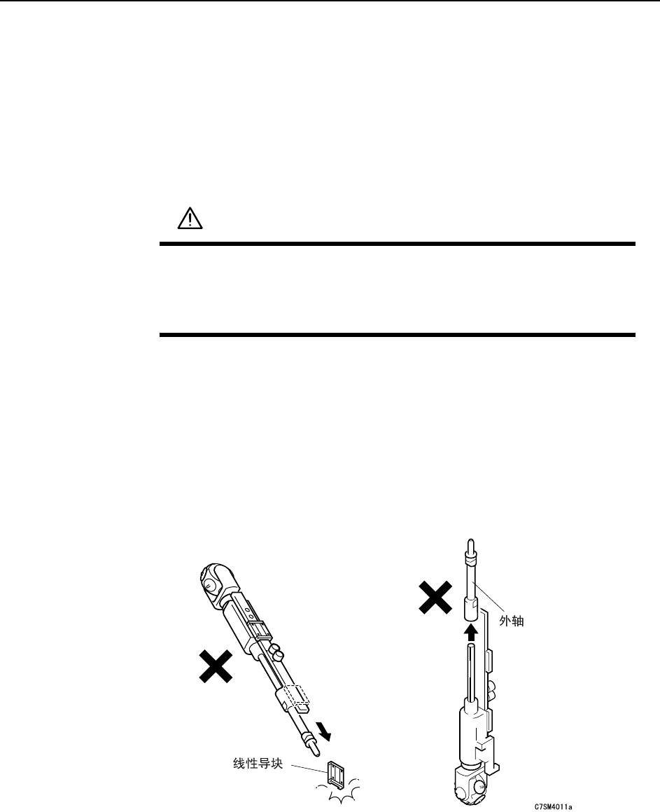 注意 ) 在取出吸嘴轴 Assy 的时候,请注意不要使线性导块与外轴滑出。