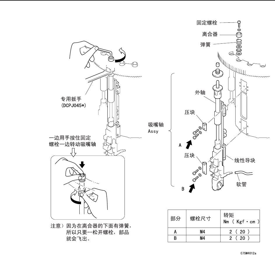 2 为了拆下吸嘴轴 Assy,首先拆下其上部的离合器。
