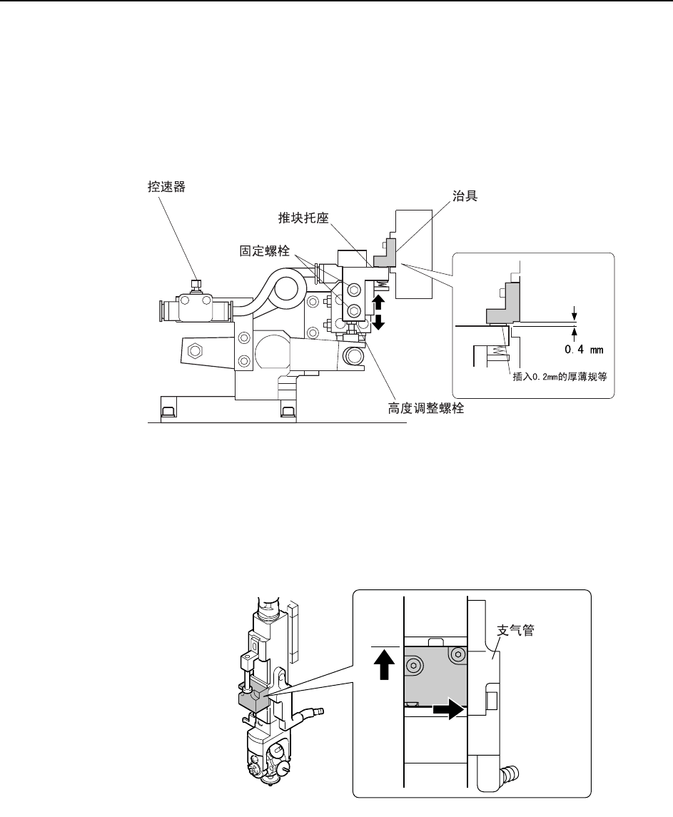8 拧松固定螺栓,调节高度调整螺栓来调整机械阀下面与推块托座上面的间隙。在机