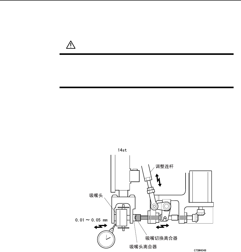 4 确认吸嘴切换离合器与吸嘴头离合器的啮合,并且确认此时吸嘴头被押入 0.01mm~