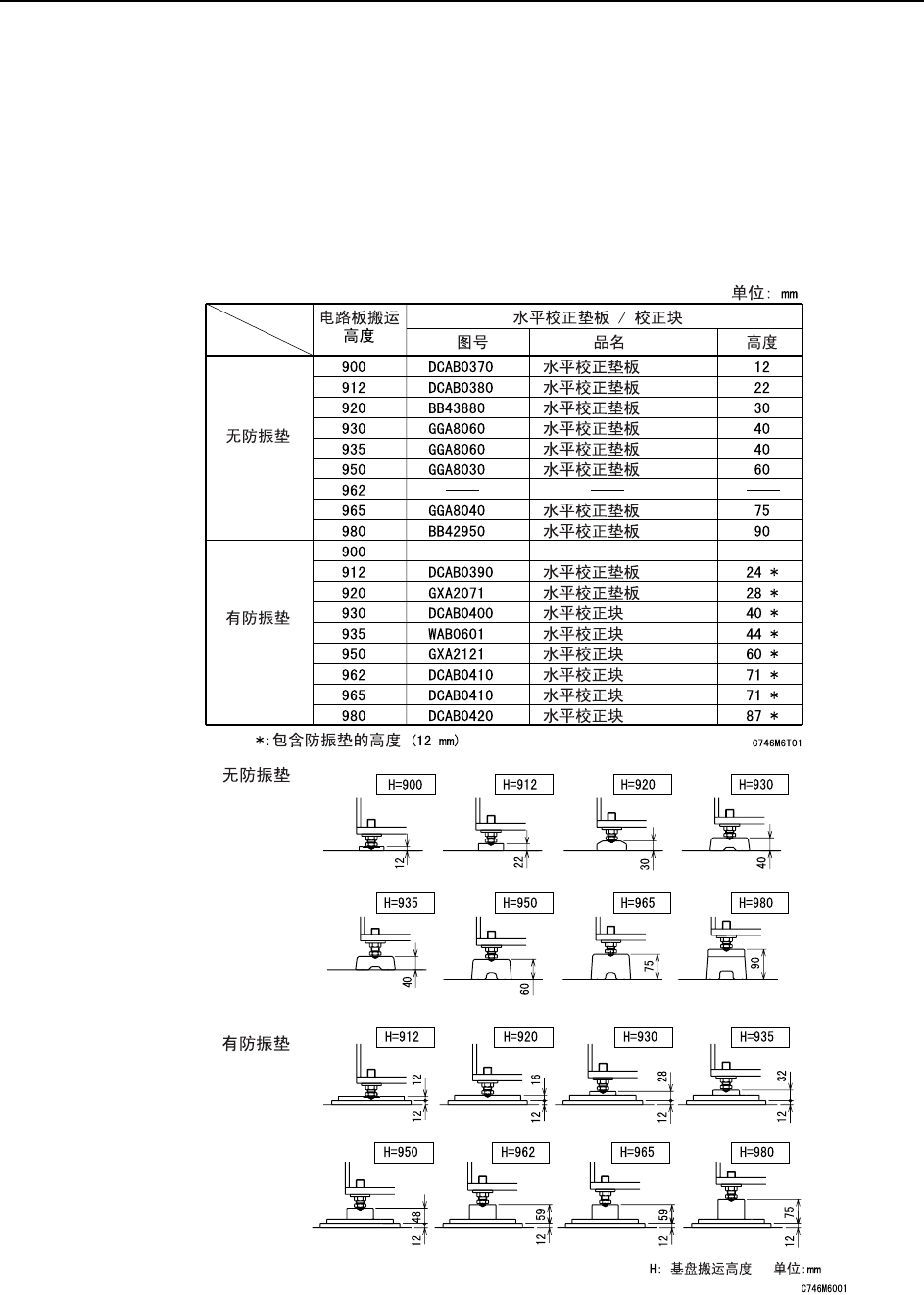 防震垫以及相应的电路板搬运高度,使用适当的水平校正垫板或水平校正块。