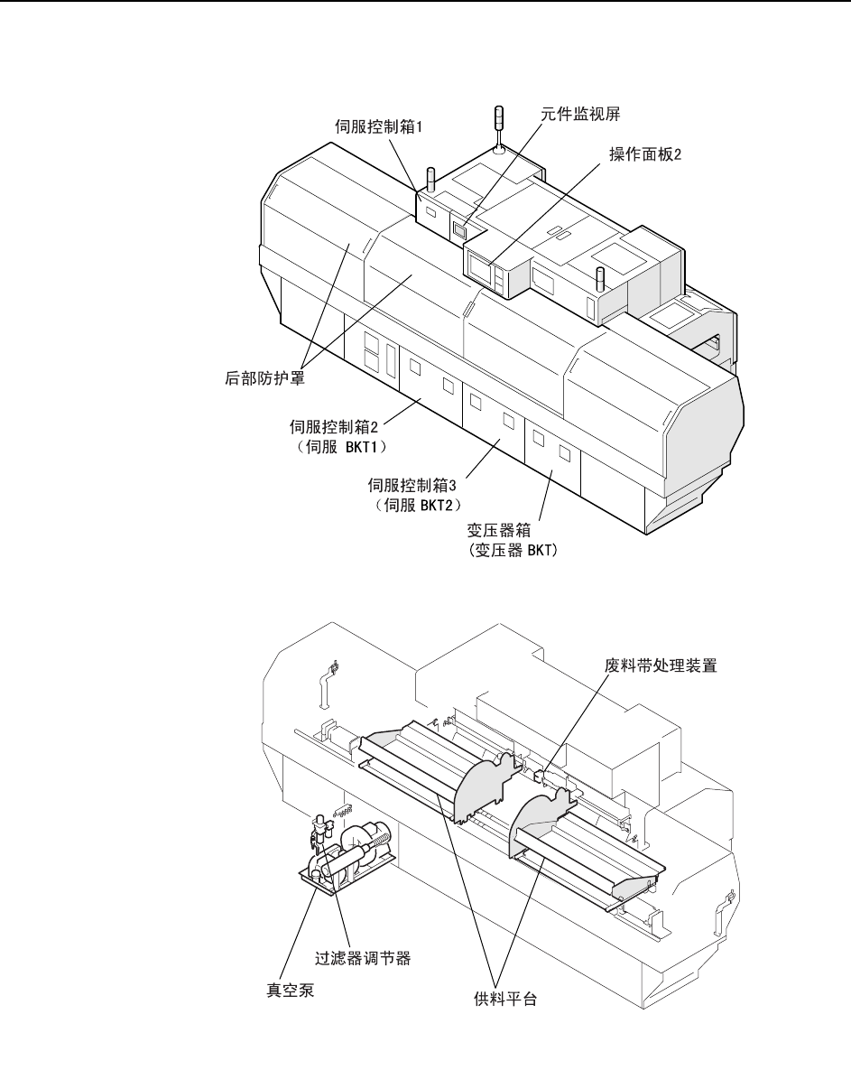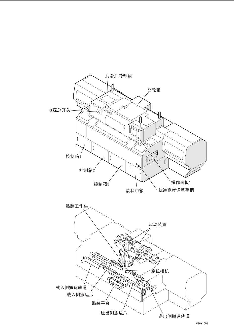 各部分的功能和名称 >> 各部分名称 MEC-CP-842-1 .0S 3-1 3 各部分的功能和名称 3.1 各部分名称 3.1.1 概述 机器前侧 <CP-842E>