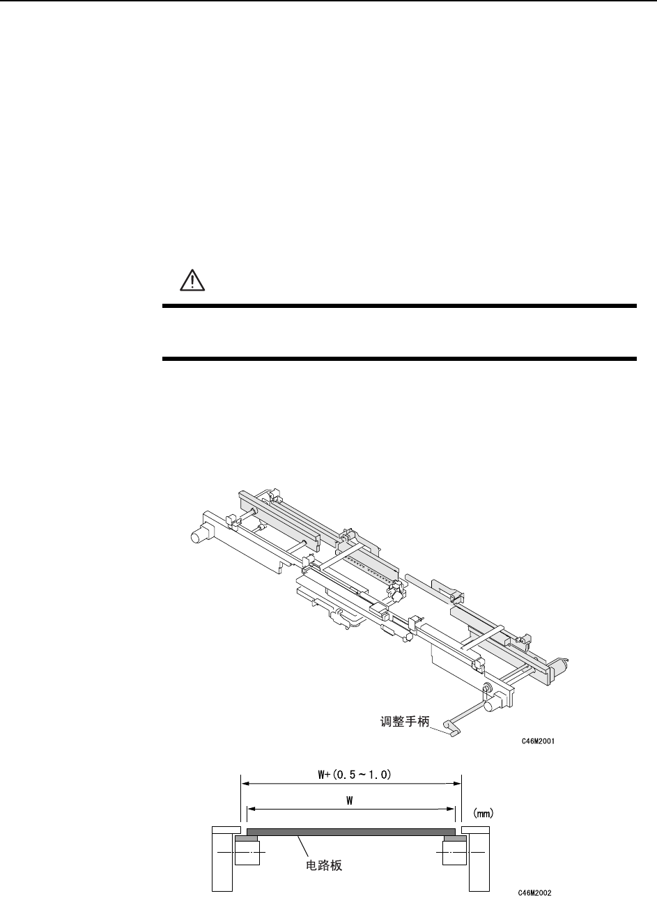 进行。为了使电路板移动以及电路板夹紧动作能够顺畅地进行,请正确地调整搬运轨道的宽