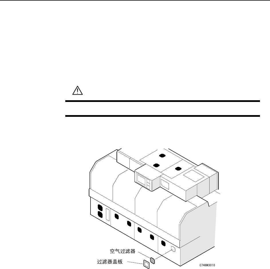 在机器内部设置的各个冷却风扇都装有空气过滤器。空气过滤器变脏堵塞后使得外面的新