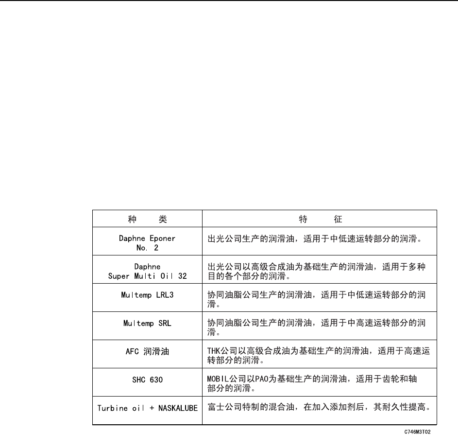 加油处、润滑油的种类以及加油周期以表格的形式来说明。