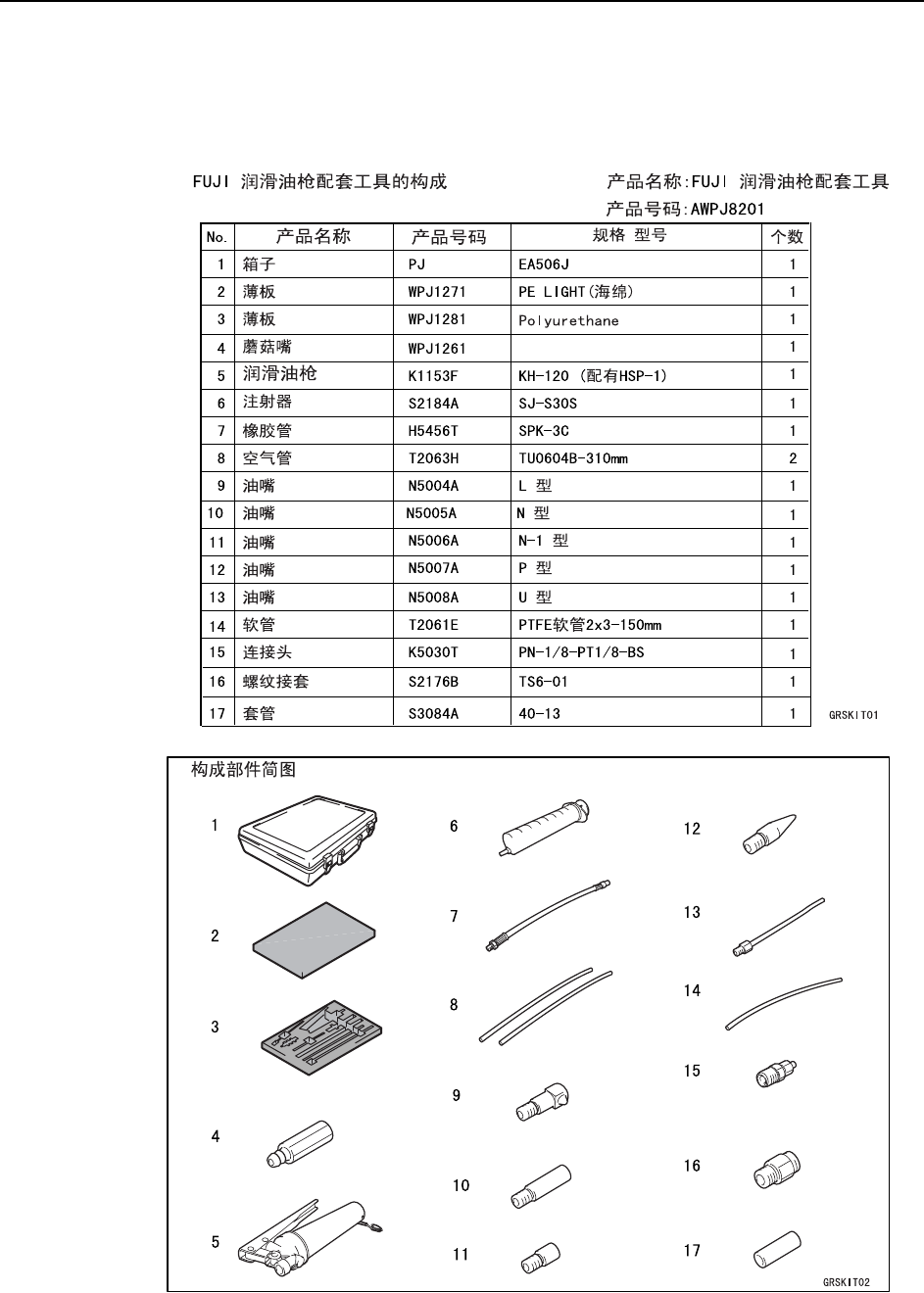 本公司销售可以使用在所有型号机器上的润滑油枪配套工具。这一套配套工具,除了泵以