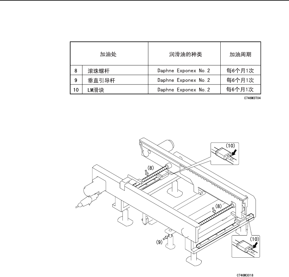 注意 ) 对于 X 轴 /Y 轴的各滚珠螺杆,必须使用加油泵来给加油嘴加油。如果直接用手将润滑油涂在