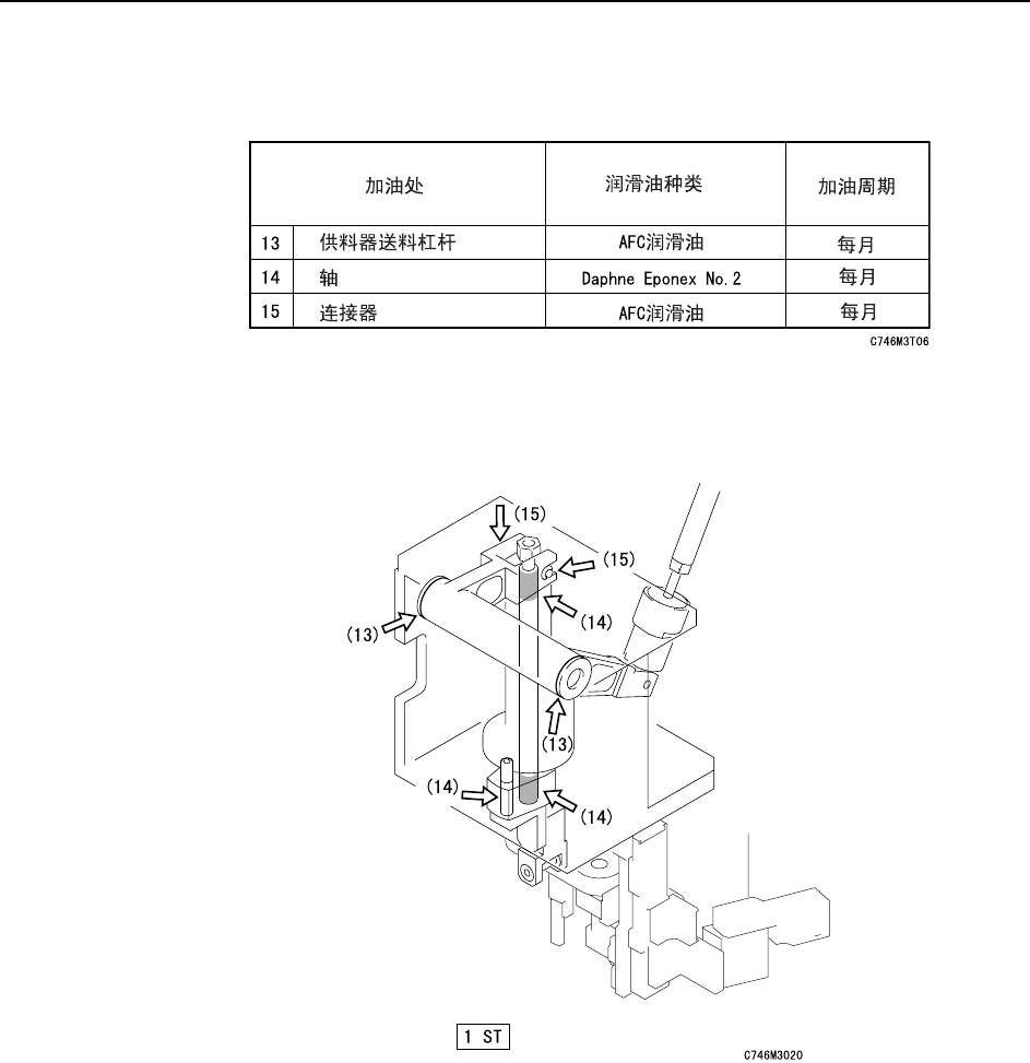 保养作业 >> 加 油 5-26 MEC-CP-842-1.0S 5.2.7 供料器送料的加油处 插图中的箭头表示加油处。