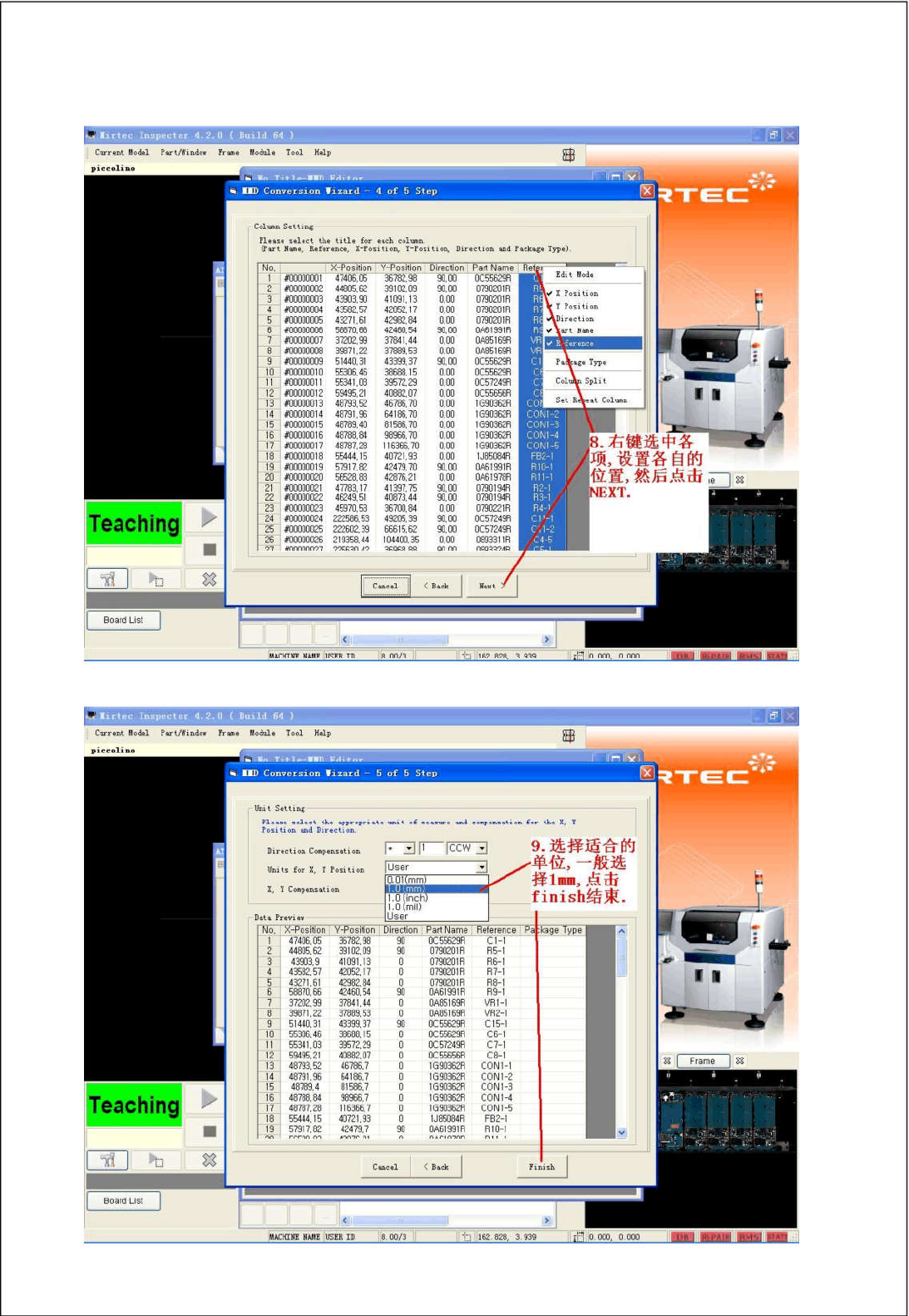 8.选择合适于贴片机的单位时,一般情况是选择1mm。