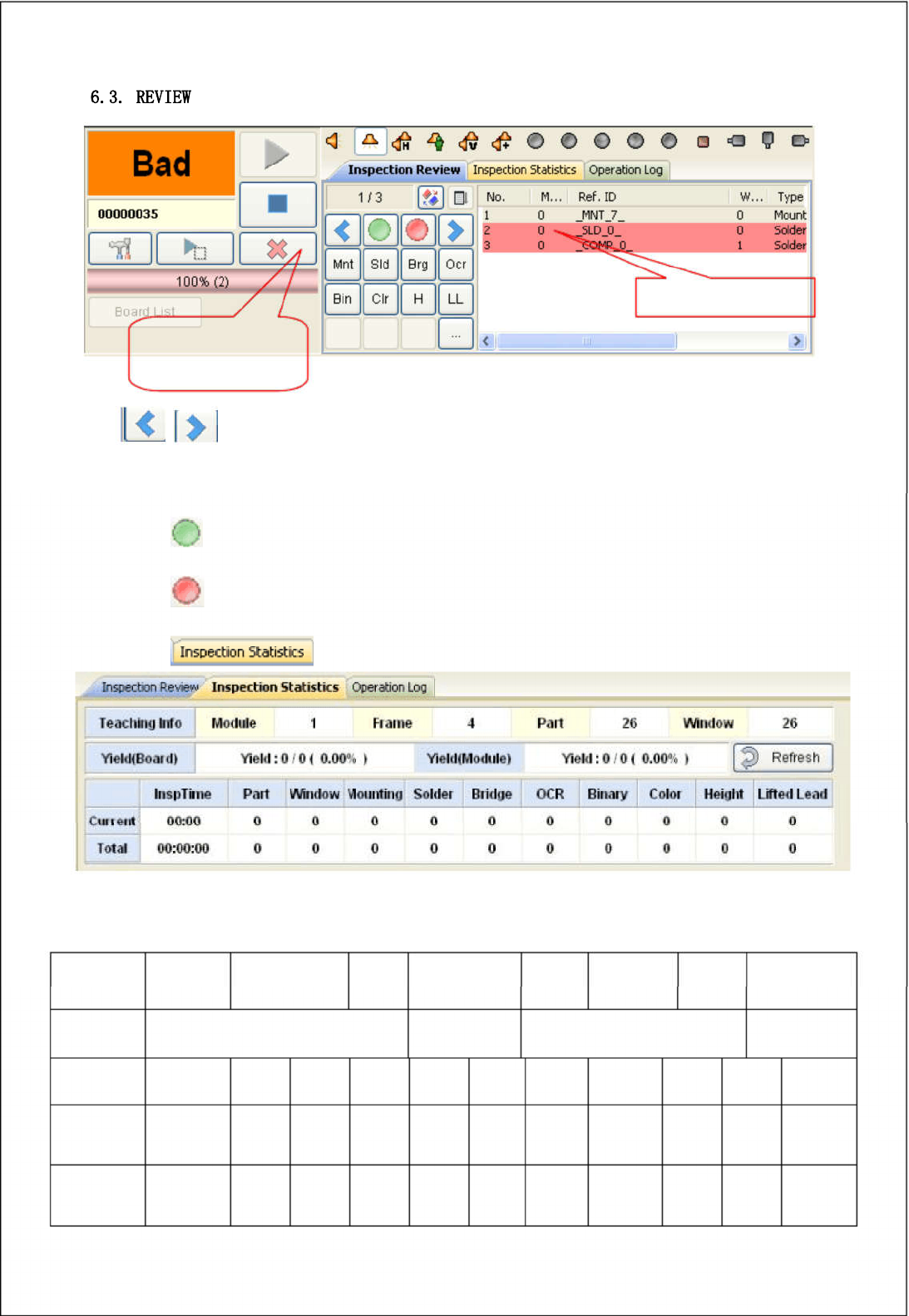 如选 REVIEW,软件将返回如图 1.3 的状态,程序将停止到不良的 FRAME