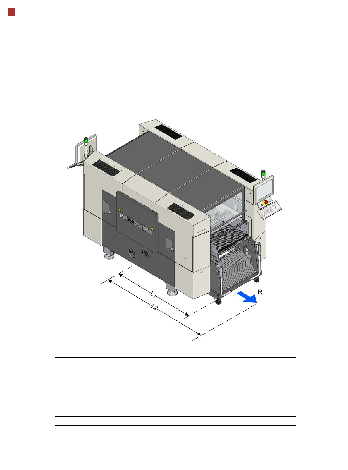 59 Technical Data SIPLACE SX1/SX2 Maneuvering Radii of WPC5/WPC6 Machine Location 1 Location 2 Maneuvering ra dius R SX1/SX2 140 0 mm 1400 mm Distance L1: Machine center to WPC outer edge SX1/SX2 186 0 mm 1860 mm Distanc…