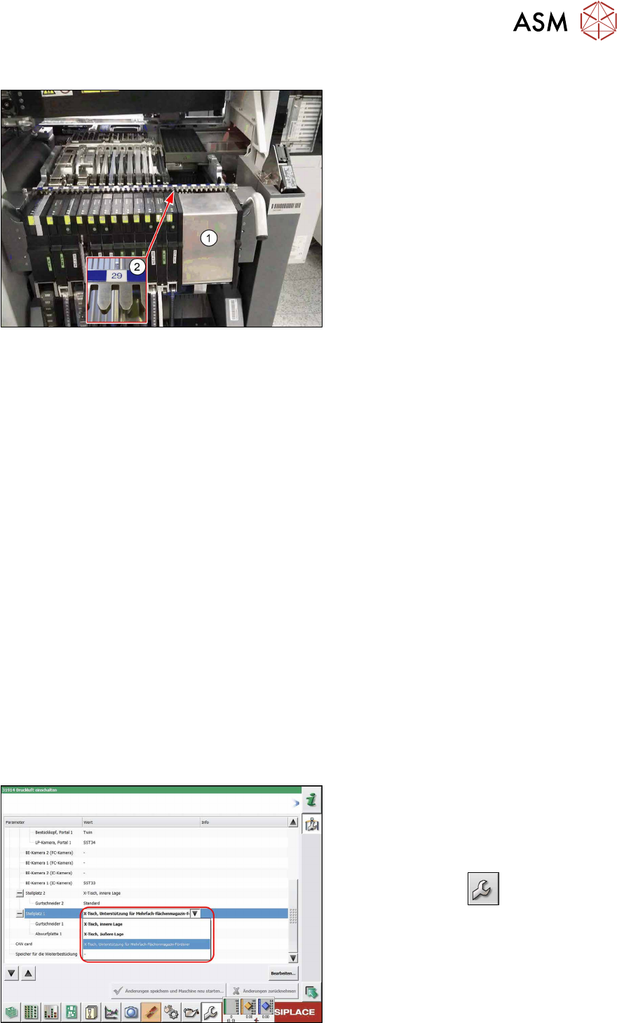 4 Aufstellen und Inbetriebnahme 4.2 Nachrüstung an der SIPLACE TX-Serie Bedienungsanleitung SIPLACE TX V1/V2 Serie JEDEC Tray Feeder (JTF-ML2) 11/2019 57 4.2.5.11 BE-Wagen vorbereiten Abb.99: BE-Wagen vorbereiten ► Setz…