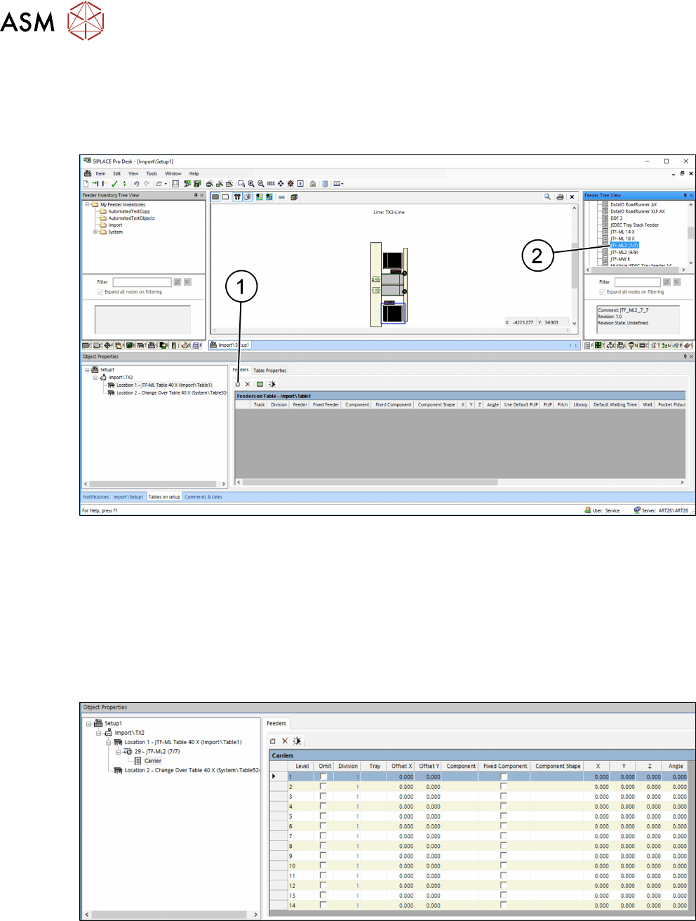 4 Aufstellen und Inbetriebnahme 4.3 Konfiguration des JEDEC Tray Feeders in SIPLACE Pro 66 Bedienungsanleitung SIPLACE TX V1/V2 Serie JEDEC Tray Feeder (JTF-ML2) 11/2019 4.3.5.3 Rüsten des JEDEC Tray Feeders auf den Tisc…