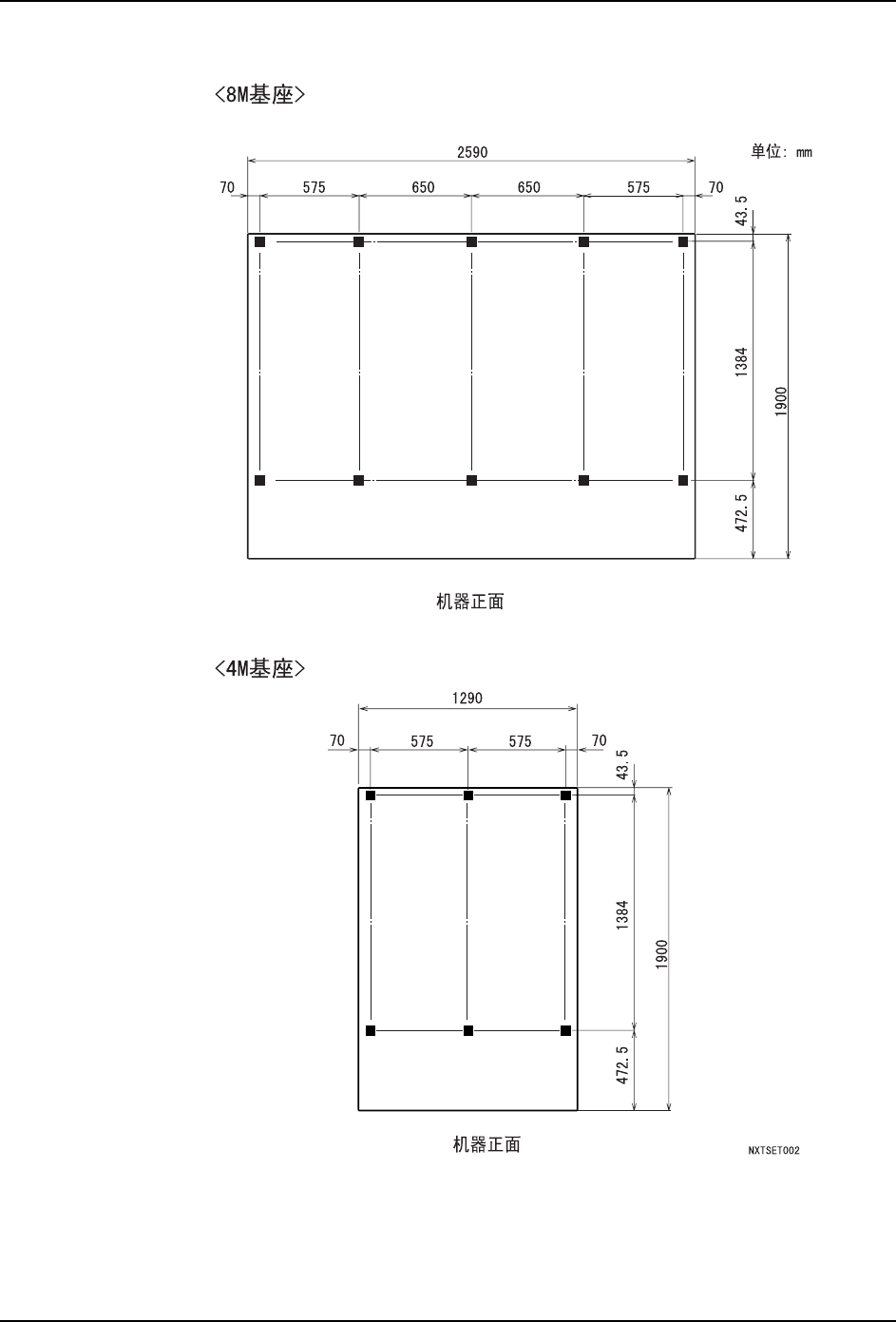 3. 机器的安装 QD023-14 22 NXT 安装手册 3.1.3 准备 1. 请事先准备必要数量的适合电路板搬运高 度的水平调整垫脚。 备注 )图中 * 印的尺寸为参考值。 2 . 4 M基 座 单 独 使 用 , 或 者2台2 M基 座 连 接 使 用 时 , 在 地 面 和 水 平 垫 板 之 间 放 入 防 止 移 动 用 的粘性胶带。请事先准备好需要 的数量。 备注 )单独使用 2M 基座时,使用地脚螺栓将其固定在地面上 …
