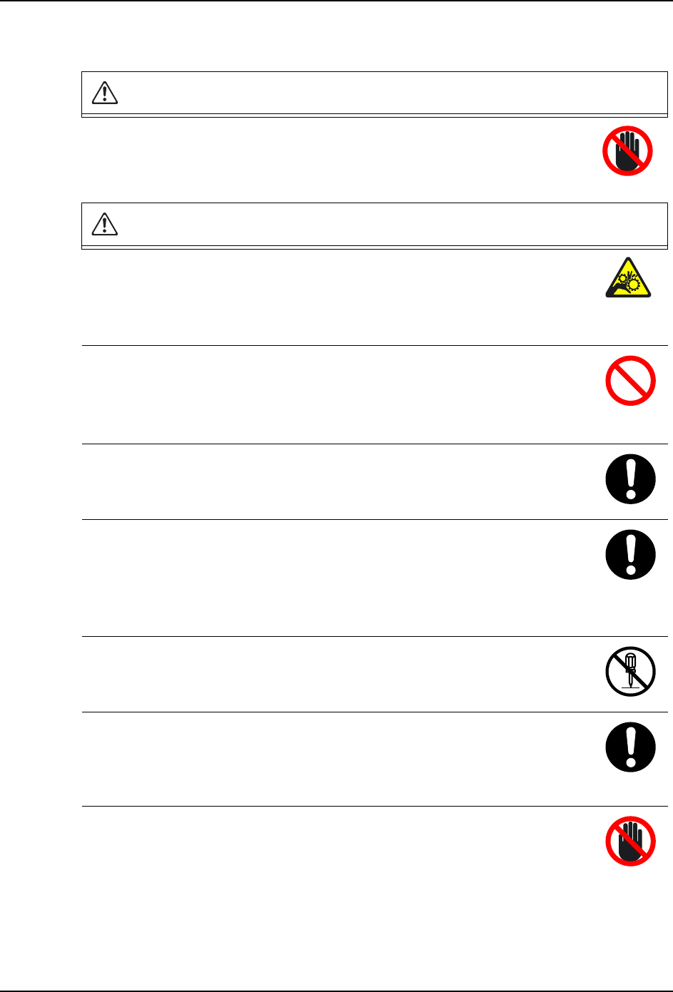 请不要从搬运轨道的开口部分将手或者身体探入机器内部。