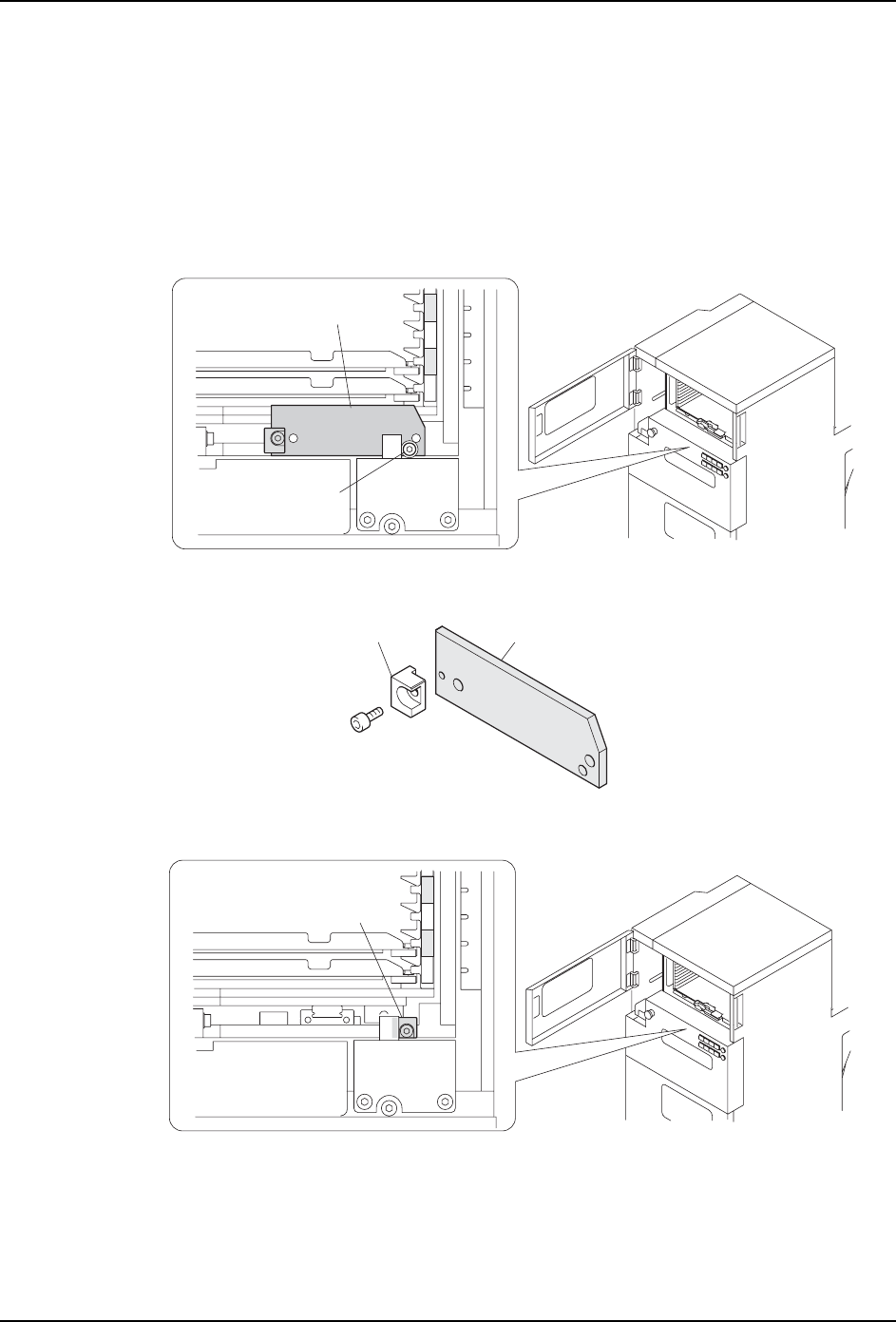 拆除安装在机器上的固定筋板 ( 红色 )。固定筋板正面上部门、正面下部门内各自有 1 个。