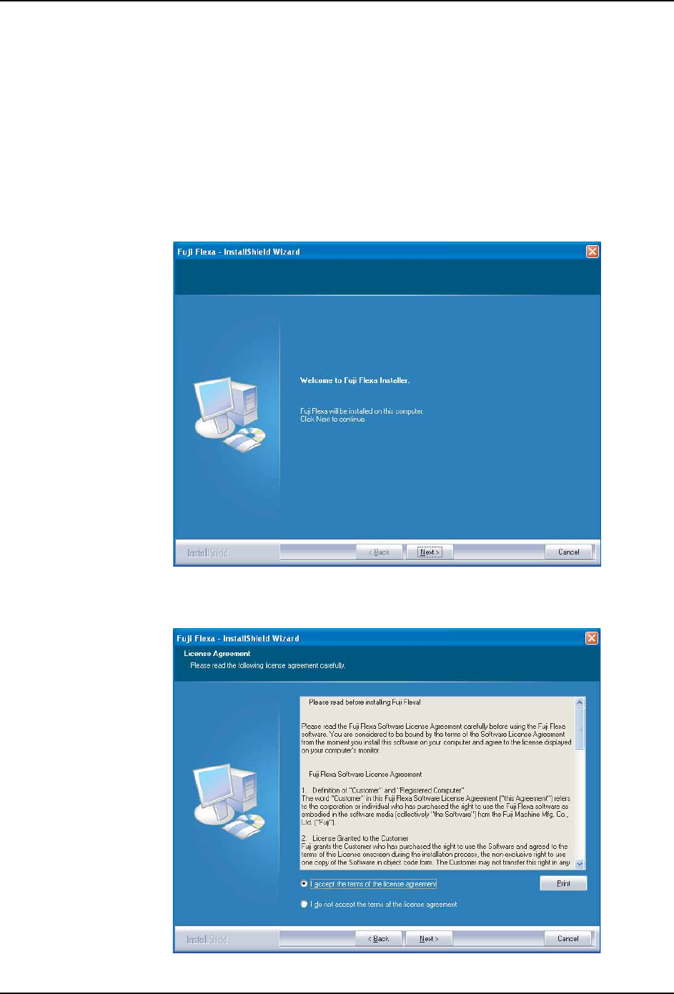 2. 在同意 Fuji Flexa 的产品使用许诺契约之后,单击 [ 下一步 ]。