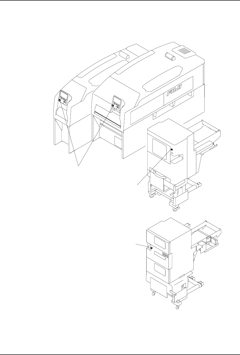 发生紧急情况时,请按下机器上红色的紧急停止按钮停止机器运转。紧急停止按钮的位置请