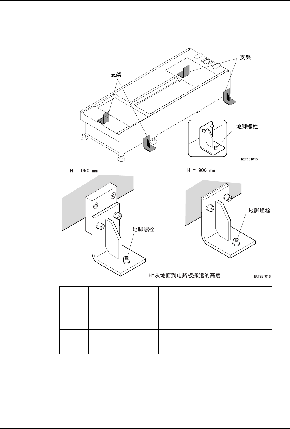 注意 )不要使在前侧水平调整螺栓上受到的机器重量太大,以免影响到基座的水平度。该前