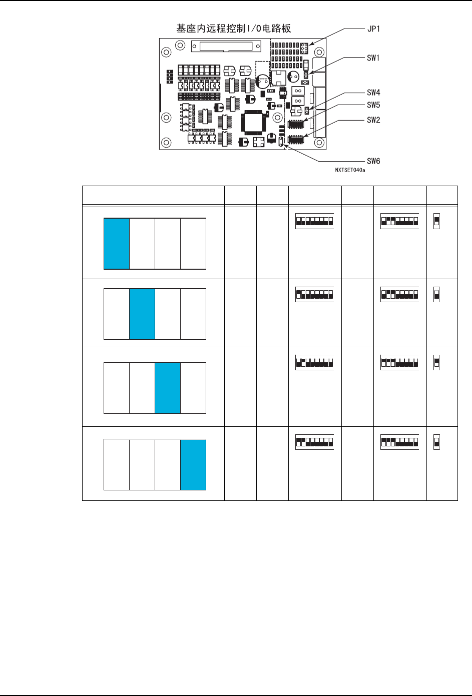 3. 机器的安装 QD023-14 44 NXT 安装手册 基座 JP1 SW1 SW2 SW4 SW5 SW6 开路 开路 短路 开路 开路 短路 开路 开路 短路 开路 短路 短路 㧻㧺 㧝㧞㧟㧠㧡㧢㧣㧤 㧻㧺 㧝㧞㧟㧠㧡㧢㧣㧤 㧻㧺 㧝 㧻㧺 㧝㧞㧟㧠㧡㧢㧣㧤 㧻㧺 㧝㧞㧟㧠㧡㧢㧣㧤 㧻㧺 㧝 㧻㧺 㧝㧞㧟㧠㧡㧢㧣㧤 㧻㧺 㧝㧞㧟㧠㧡㧢㧣㧤 㧻㧺 㧝 㧻㧺 㧝㧞㧟㧠㧡㧢㧣㧤 㧻㧺 㧝㧞㧟㧠㧡㧢㧣㧤 㧻㧺 㧝