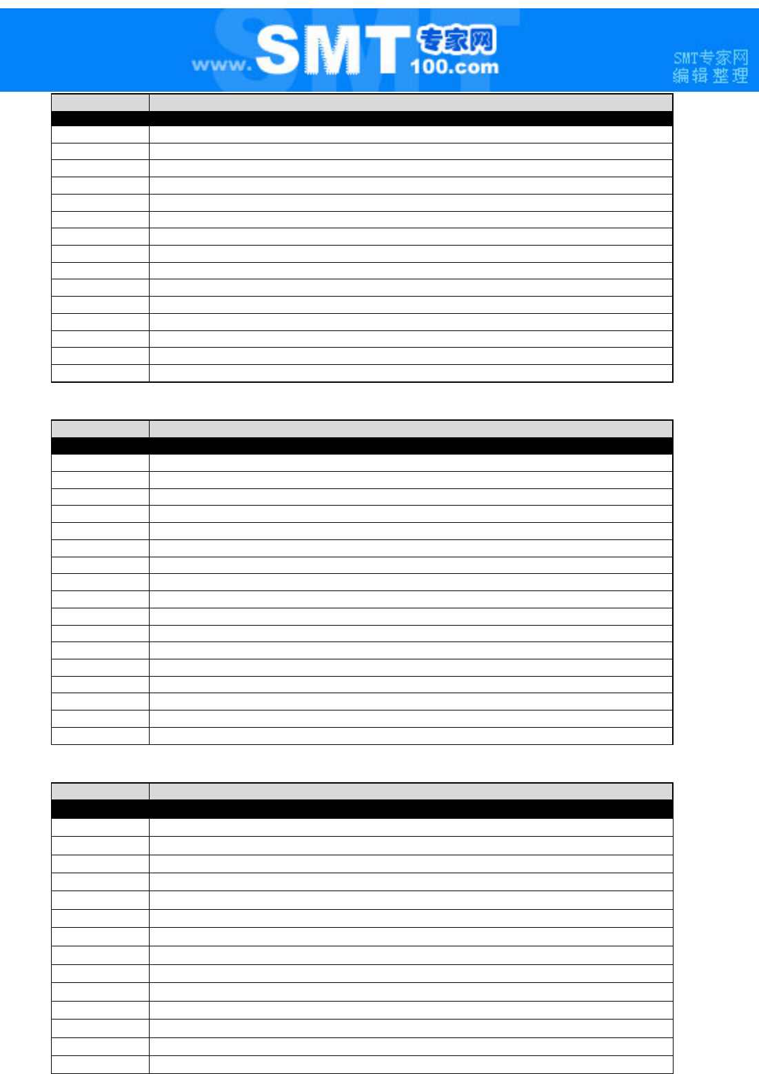 故障检修 錯誤消息集 3-17 E50020 1 没有完成贴片数据。 E500202 没有完成元件数据。 E500203 没有完成吸取数据。 E500204 没有完成标记数据。 E500205 没有完成图像数据。 E500206 识别 BOC 标记示教尚未结束。 E500207 基板基准标记示教尚未结束。 E500208 生产程序被破坏。 E5002 1 0 吸取数据内存在自动选择,不能执行生产。 E5002 11 不存在指定的贴片数据…