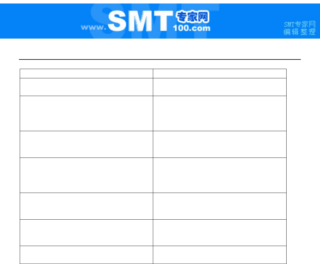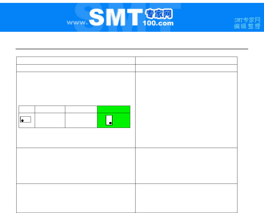 故障检修 操作上的故障检修 1 -4 1 - 1 -4 仅特定的元件发生贴片偏移。 原因 对策 ① 贴片数据设定错误。 ① 重新设定贴片数据 ( 确认 CAD 坐标或重新示教 等 ) ② 使用 CAD 数据 时, CAD 的贴片坐标 出现错误。 ② 确认 CAD 数据, 出现错误 时,重 新设定贴片数 据。 ③ “元件数据” 的 “扩充” 的 “激光高度” 或 吸嘴选择错误。 ③ 稳定元件并将可定心的高度设定为激光高度 ( 请参照第 4…