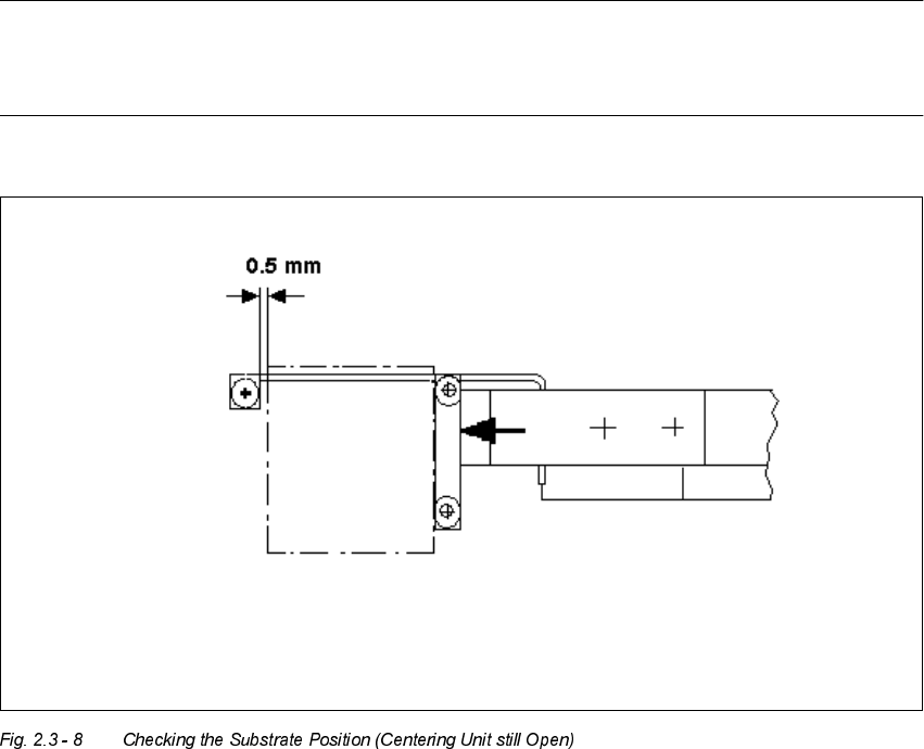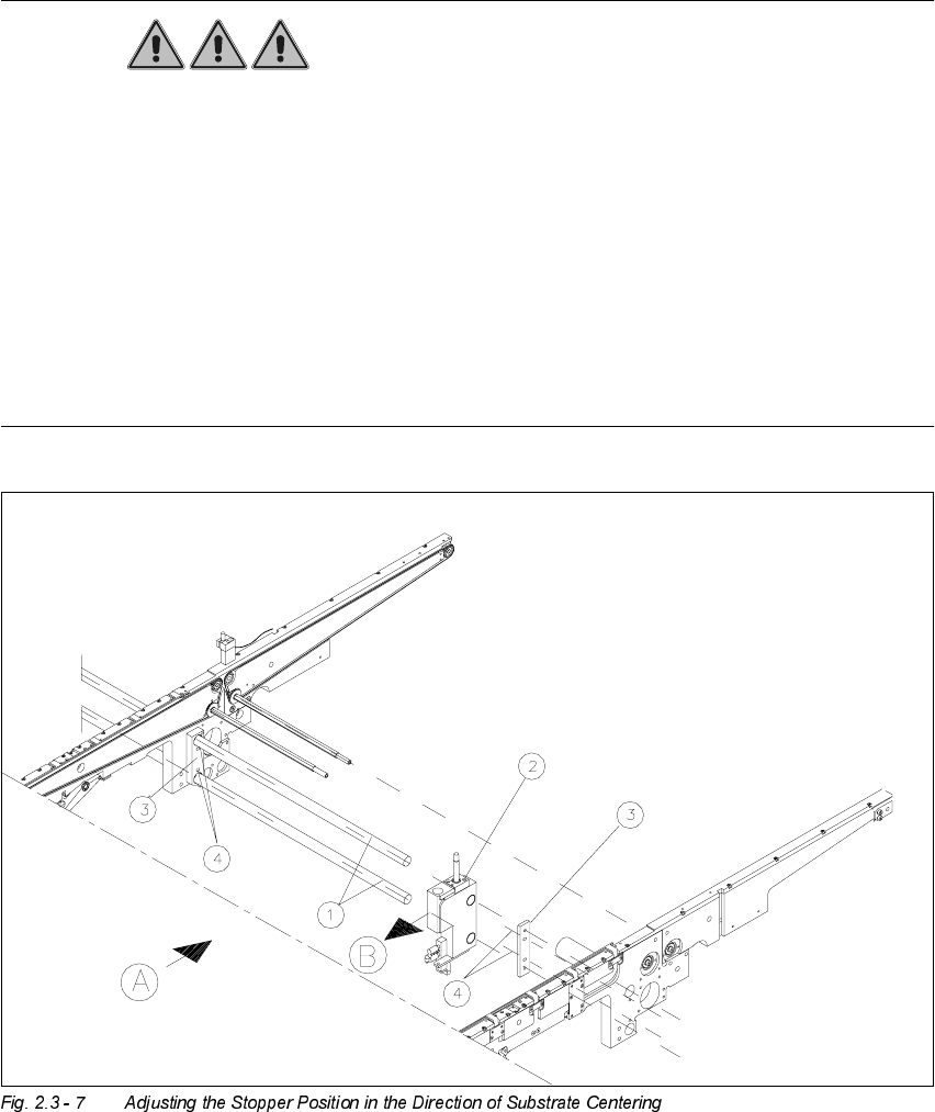 User Manual 2 Ceramic Substrate Centering Unit Software Version S R.502.xx 01/01 Issue 2.3 Mechanical Ceramic Substrate Centering 47 $GMXVWLQJWKH 6WRSSHU 3RVLWL RQ DANGER Only th e line eng ineer is p ermitte…