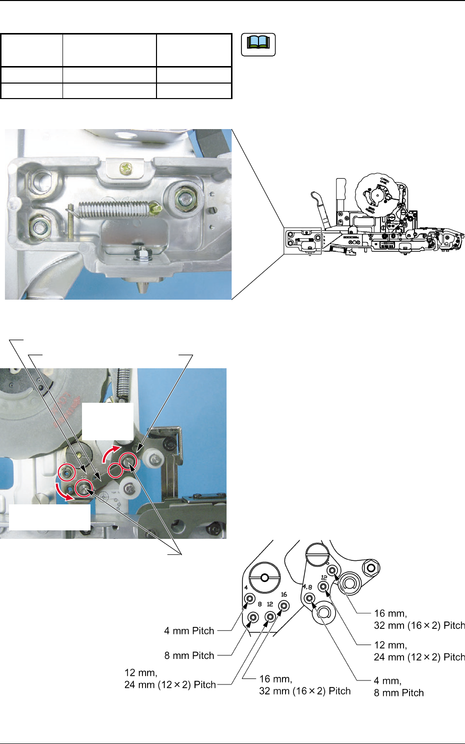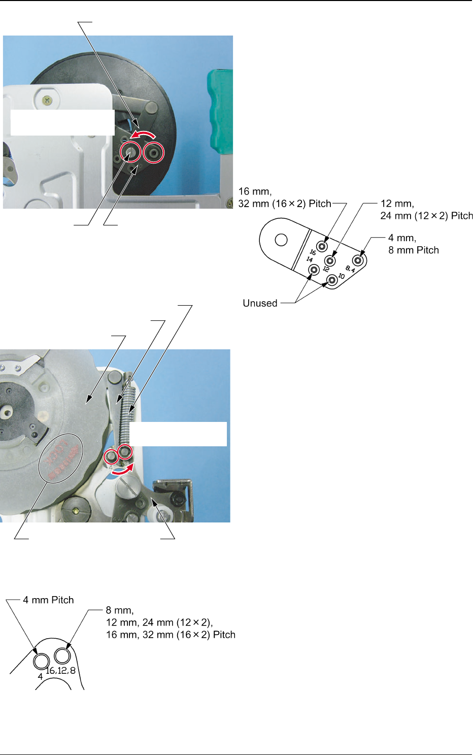 Tg0409-PM-SO 0410-002 33 4.1 Feed Pitch Selecting Procedure (a) When the pitch is changed from 4 or 8 mm to 12 or 16 mm in TF-1610, it is necessary to change the take-up spring (Refer to T able 3). (b) Attach and store t…
