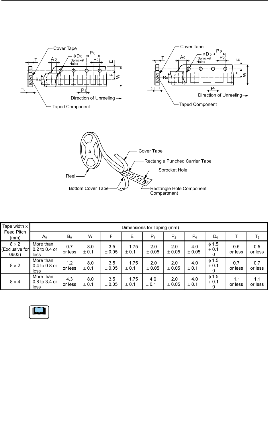 of the cover tape should be aligned with the carrier tape (taping).