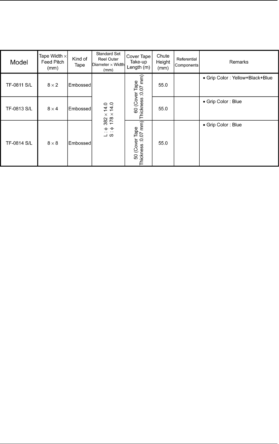 up rate. Use the taping component with appropriate clearance specifica-