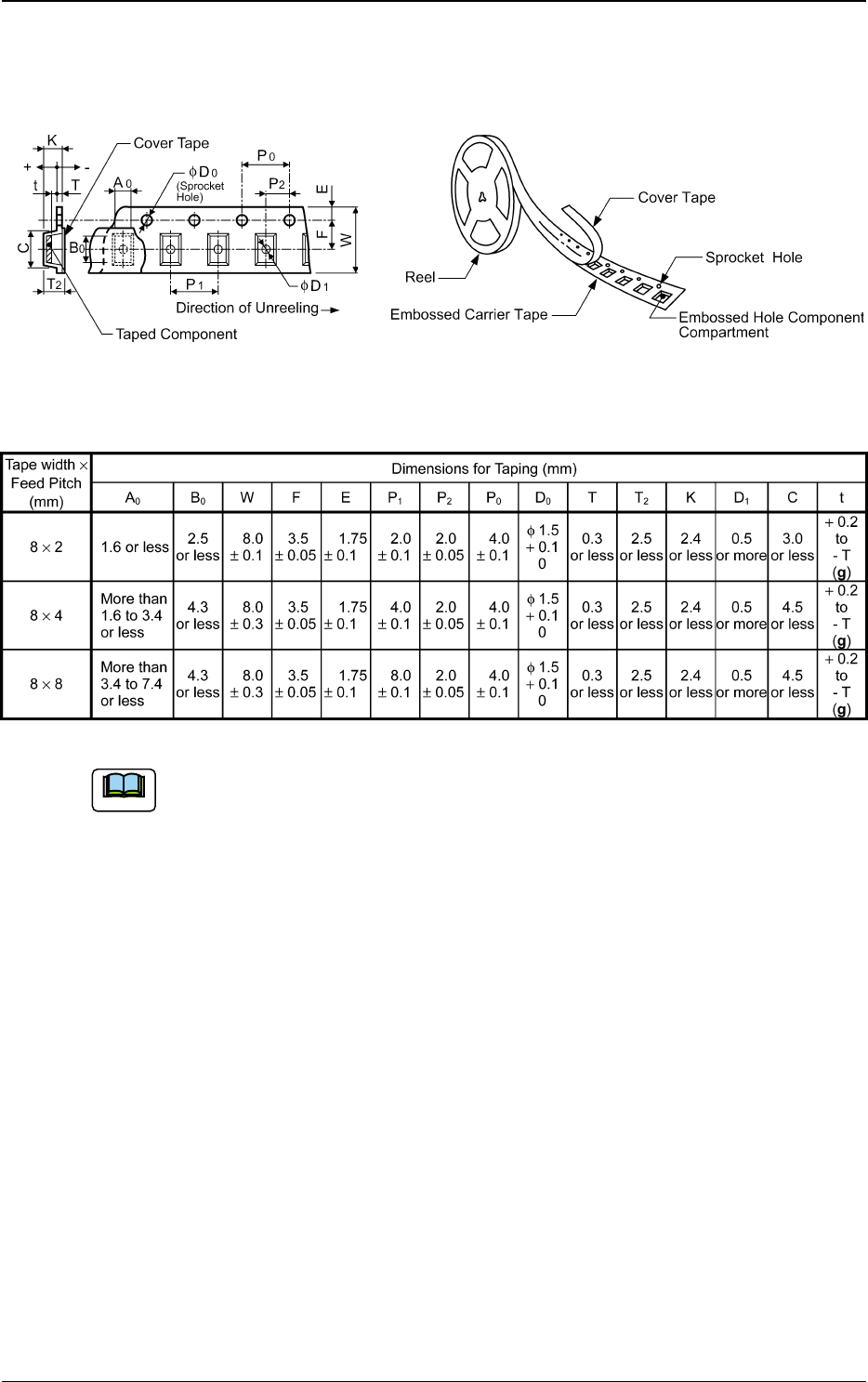 of the cover tape should be aligned with the carrier tape (taping).