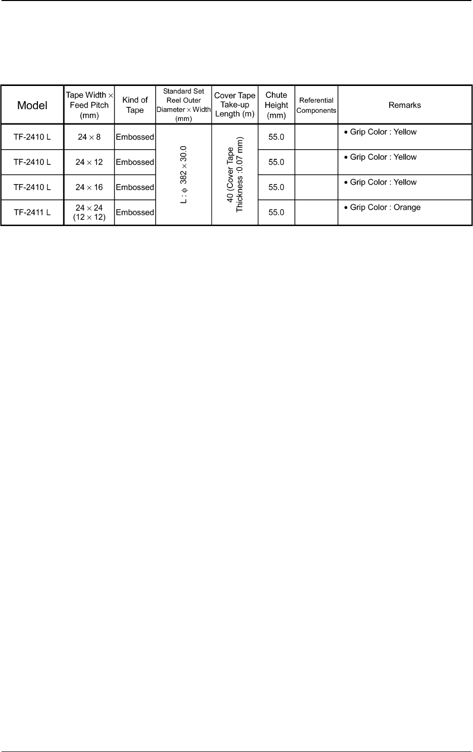 Tg0409-PM-SO T able 24 0410-002 90 8.5 Specifications of 24 mm T ape Feeder (For Embossed T ape) 8.5 Specifications of 24 mm T ape Feeder (For Embossed T ape)