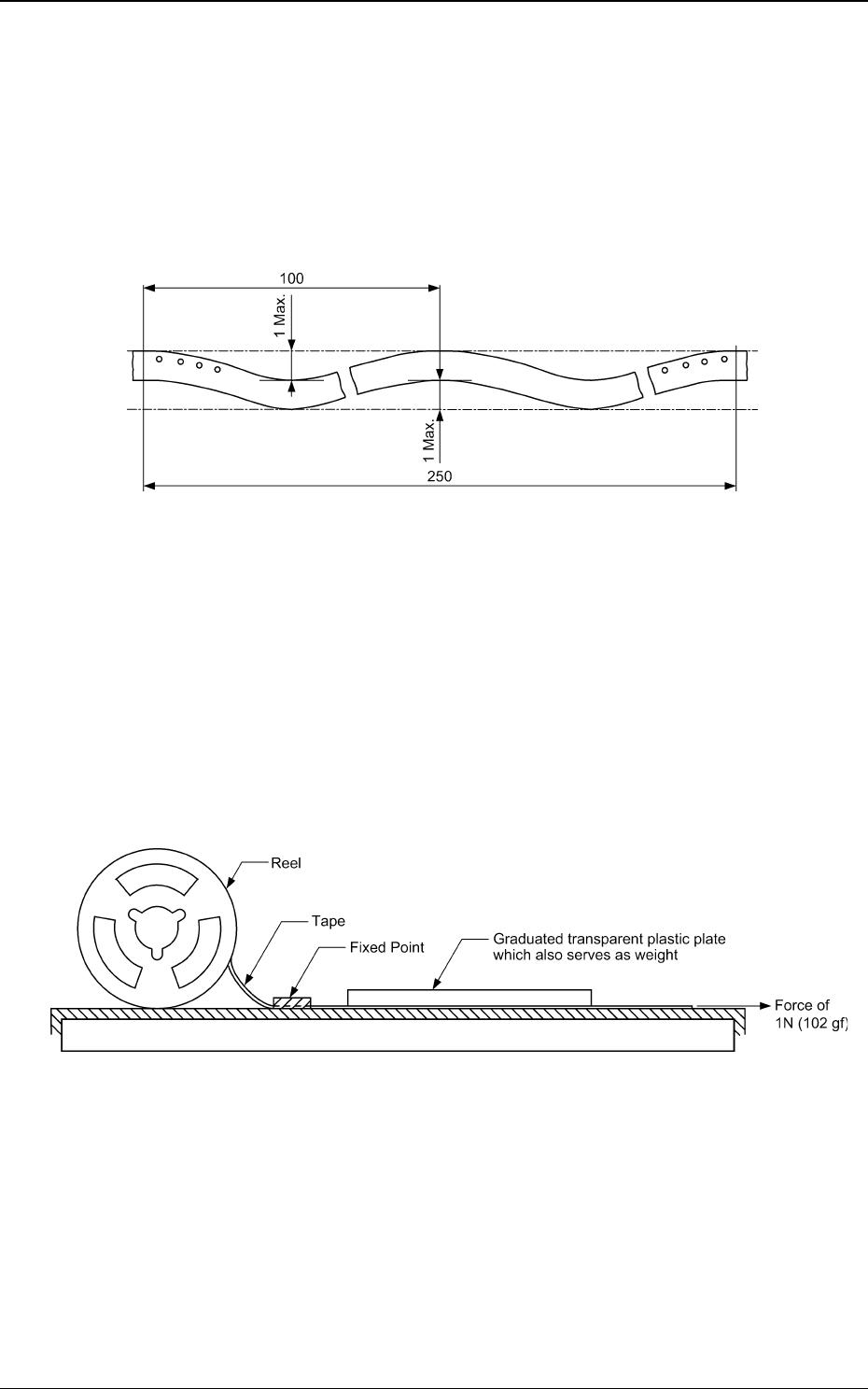 tape is fixed, the tape is pulled by a force of 1N (102 gf) applied to the other
