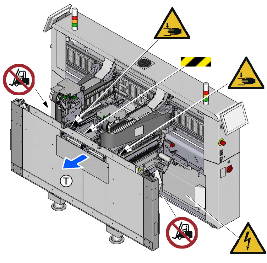 Rys. 2.2 - 3 Tabliczki ostrzegawcze na automacie montażowym (tabliczki standardowe) – przykład SIPLACE TX2i)