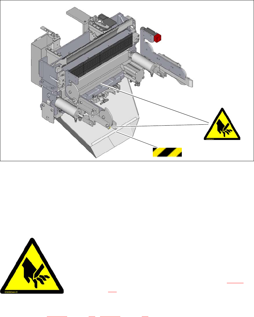 Rys. 2.2 - 12 Tabliczka ostrzegawcza na wierzchu przyrządu do odcinania taśmy