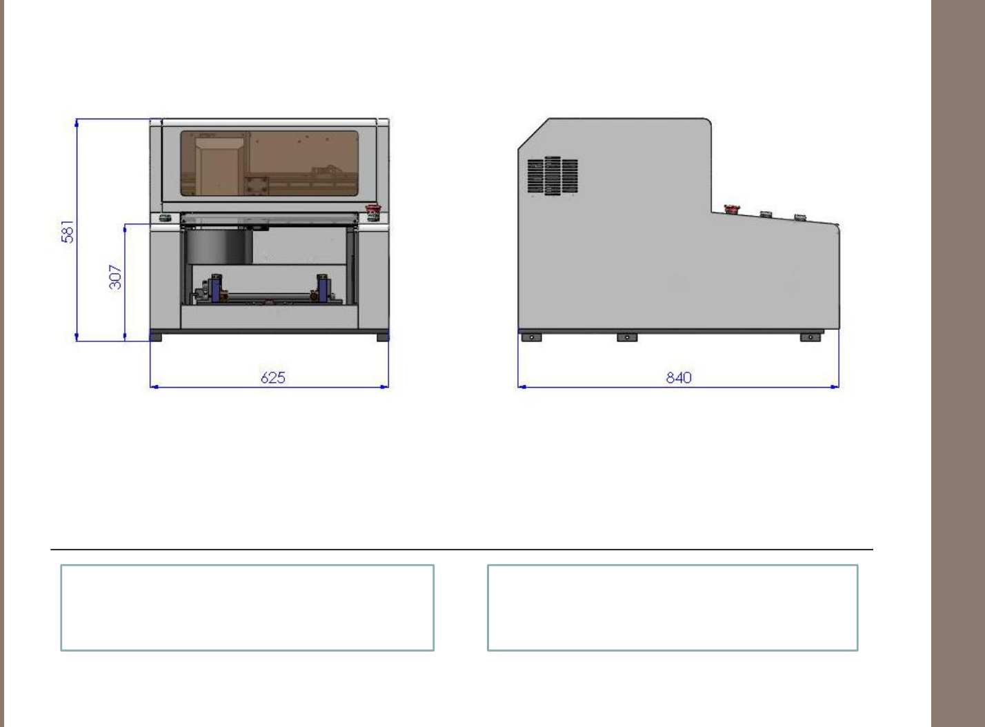 外观。体积仅占625mm*840mm*581mm。伺服马达系统、精密级滚珠丝杠与滑轨