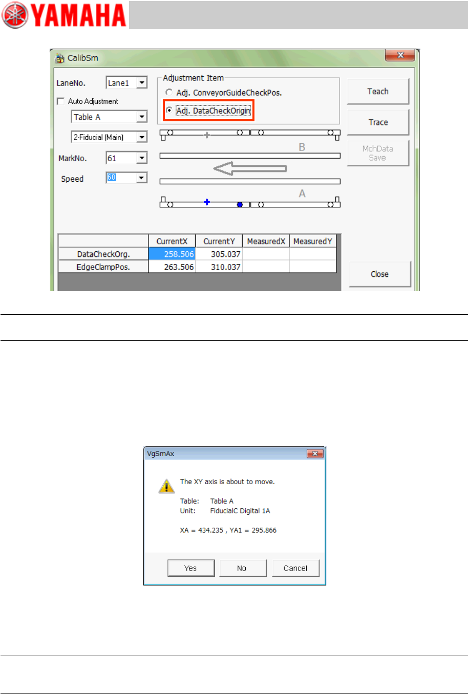Adjust the board sensor position precisely, and adjust the “Data Check Origin” position as the