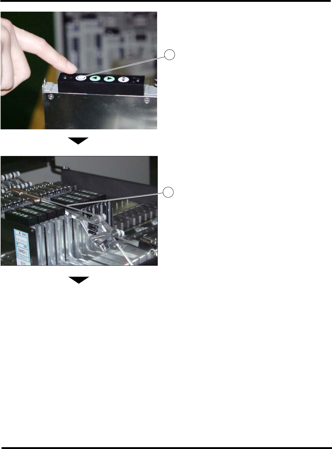 Intelligent Tape Feeder 操作手册 2.2 编带的设置 Page 2-13 10. 使压紧编带的端部与导入齿轮的咬合处相 接触。 11. 在步骤 10. 的状态下,按压紧编带导入用 开关 。 12. 确认压紧编带与齿轮相咬合, 如左图所示。 ∗ 因编带的卷曲等原因而导致插入困难 时,请进 行下述方法之一。 • 用手指把编带平直。 • 把编带的没有卷曲的部分折成 180 °,然后把 折叠部插入到齿轮之间。 下一页…
