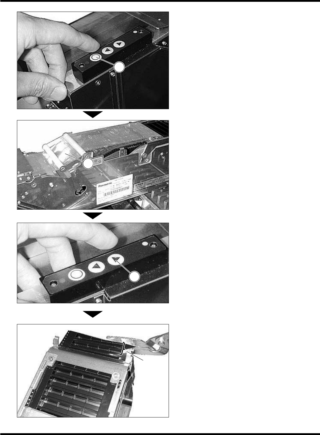 Intelligent Tape Feeder 操作手册 2.2 编带的设置 Page 2-22 7. 关闭压盖 后使用插锁 固定。 ∗ 请使用插锁 确实固定。 8. 连接编带供料器的电源线。 9. 将压紧胶带通过张力辊 的上面和张力辊 的下面,然后将压紧胶带的端部推到导 滚齿轮插入口 处。 ∗ 请确认压紧胶带上没有扭歪或结扣。 下一页 INTF-108P 2 INTF-117P 2 1 INTF-118P IN…