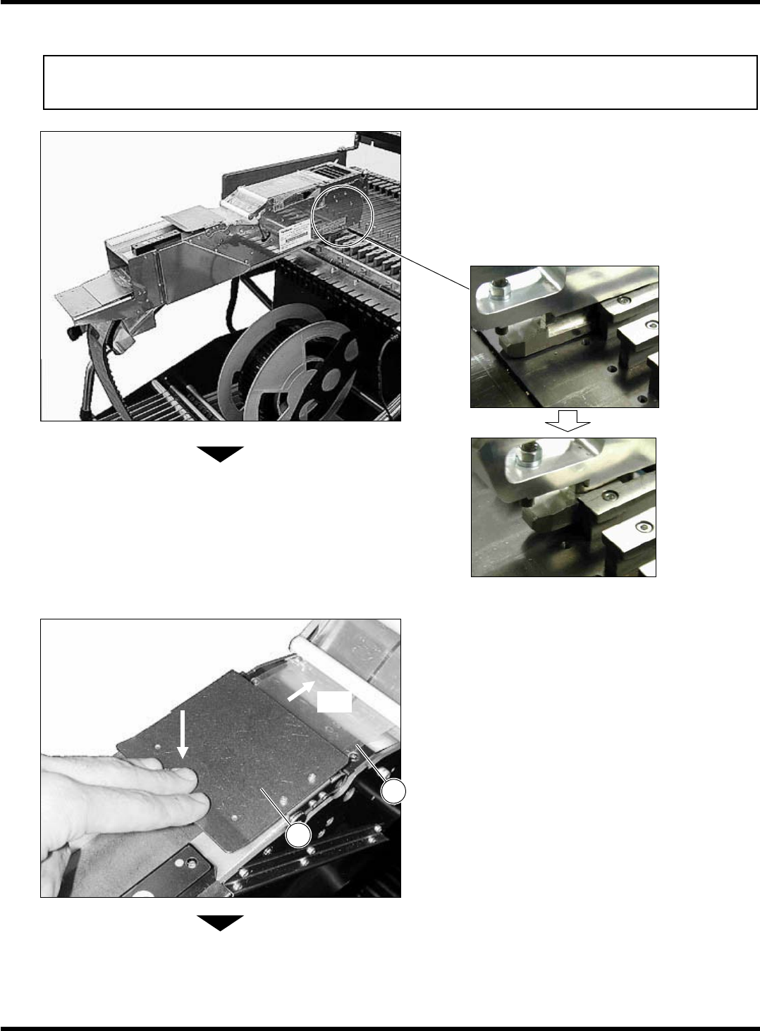 Intelligent Tape Feeder 操作手册 2.2 编带的设置 Page 2-26 6. 把编带插入口的编带向后拉,抽出编带。 7. 关闭压盖。 INTF-036P INTF-037P INTF-C-OMB02-A01-01