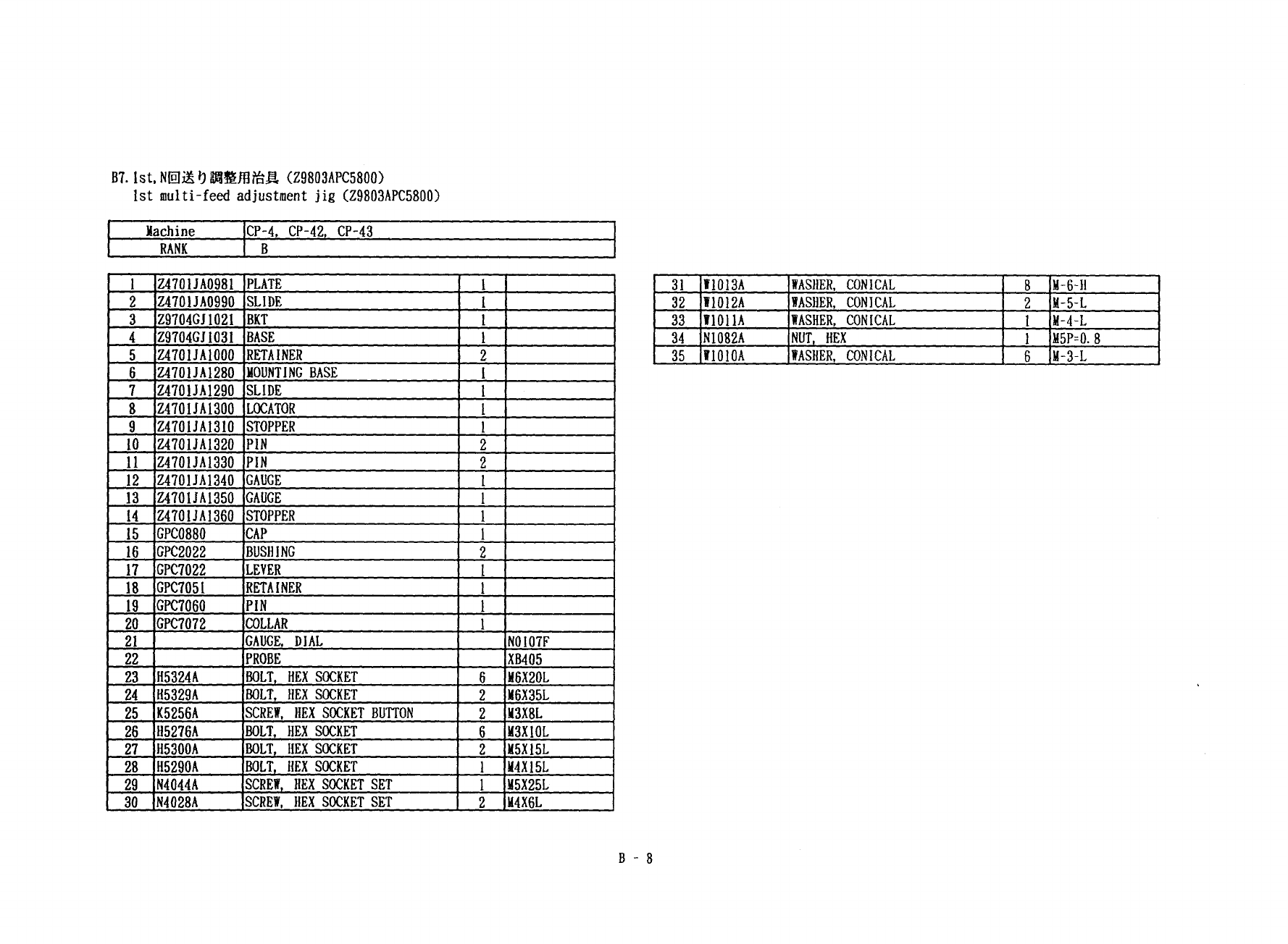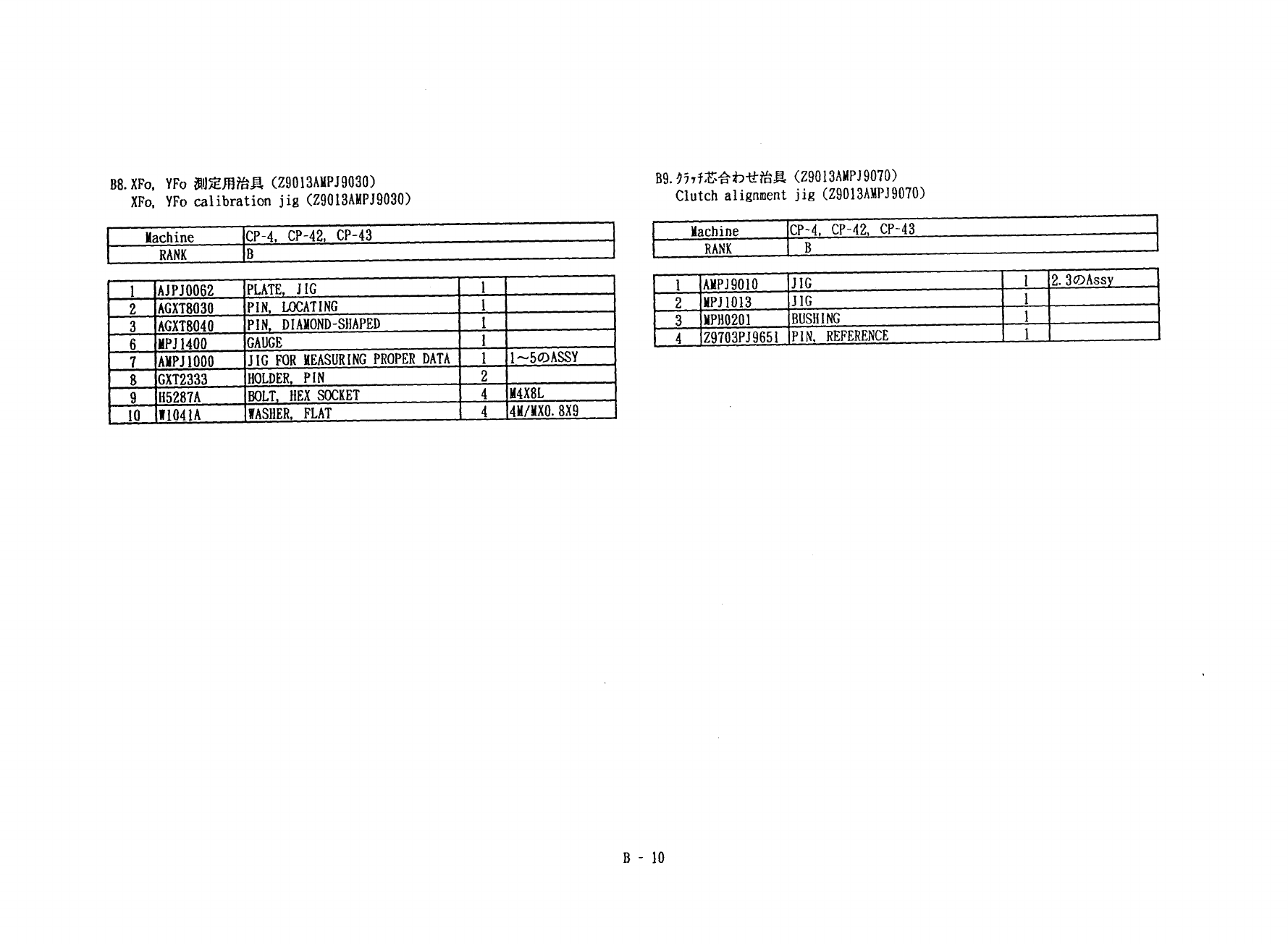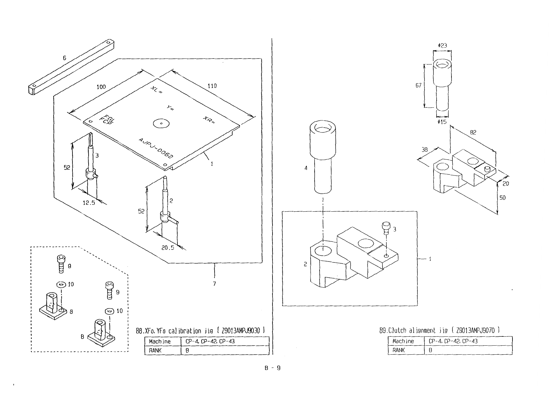 67 110 十又 、 ◦ M 5 3 52 K 20 50 12.5 管 9 、 © 1 0 管 9 © 1 0 B 9 . Clutch alignment jig ( Z 9013 AMPJ 9070 ) B 8 . XFo . YFo calibration jig ( Z 9013 AHPJ 9030 ) 8 Machine CP - 4 , CP - 42 . CP - 43 CP - 4 , CP - 42 , CP - …