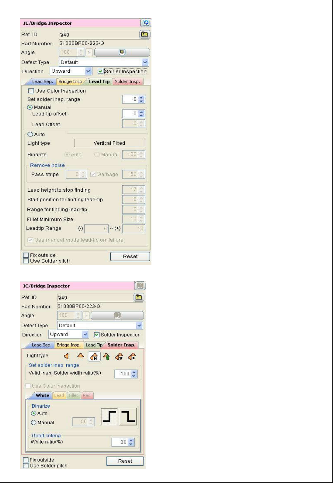 所以建议: Bridge Insp 的全部参数套用Lead Sep 的参数即可.