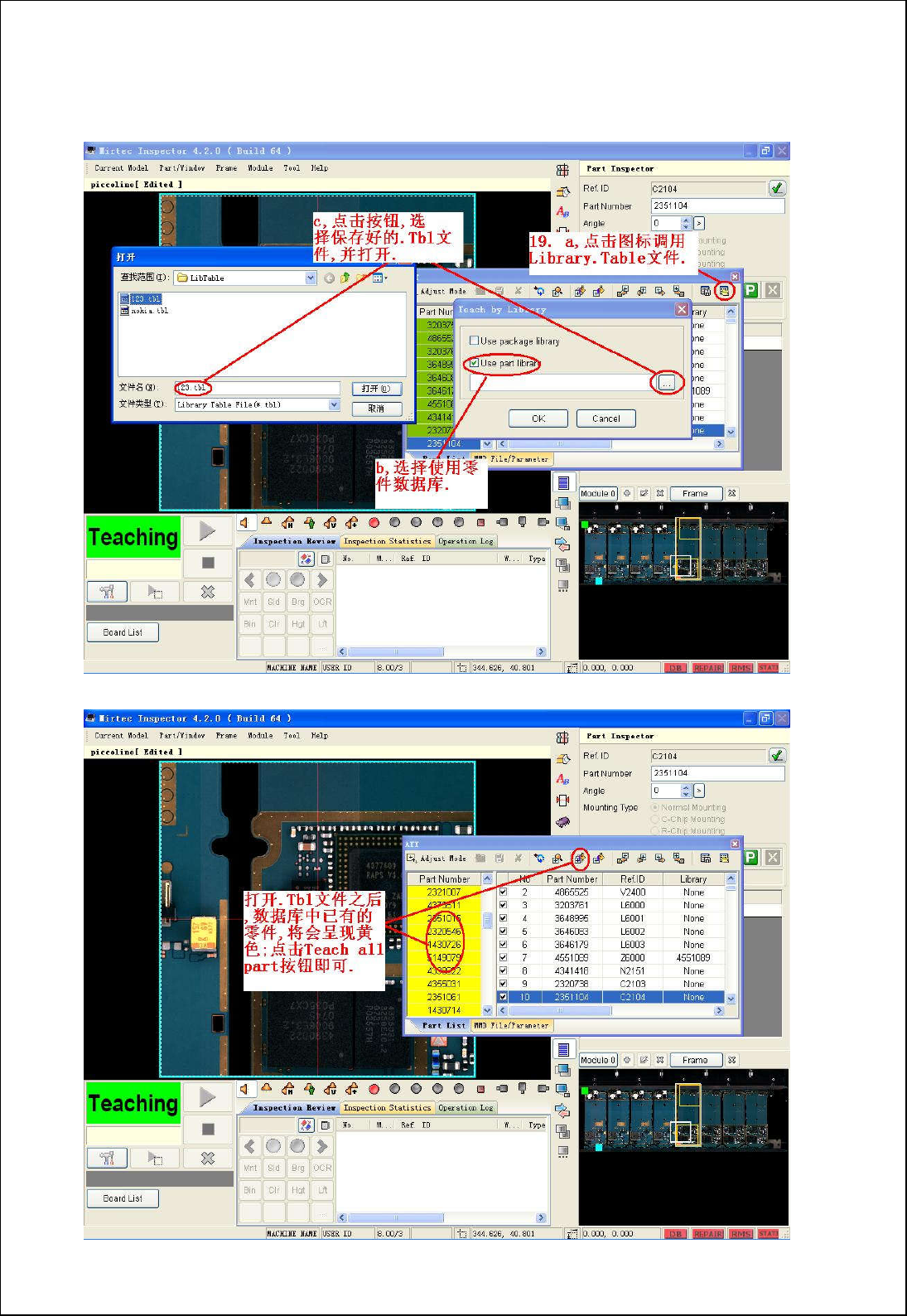 : 設定後, 顯示在PCB全體影像Window内Teaching好的windows